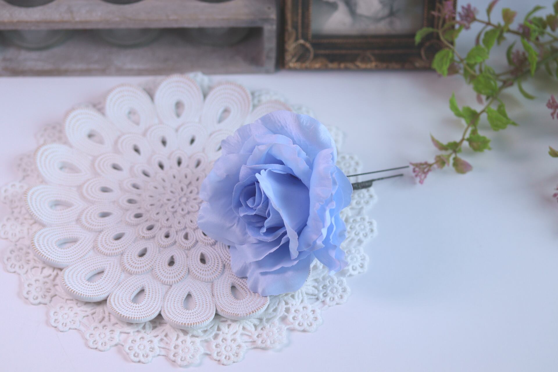 大輪の水色の薔薇の髪飾り 水色 ブルー 大きめ 花径12cm フラメンコ 花飾り 頭飾り 髪飾り フローレス バラ 薔薇