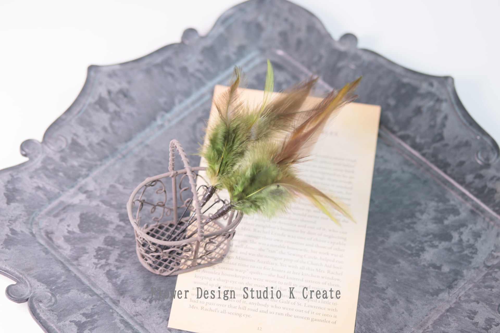 モスグリーン系フェザーの髪飾り 2本 羽 羽根 フェザーピック 成人式 前撮り 緑色 グリン 袴 髪飾り 和装 着物 ヘッドドレス ヘッドピース