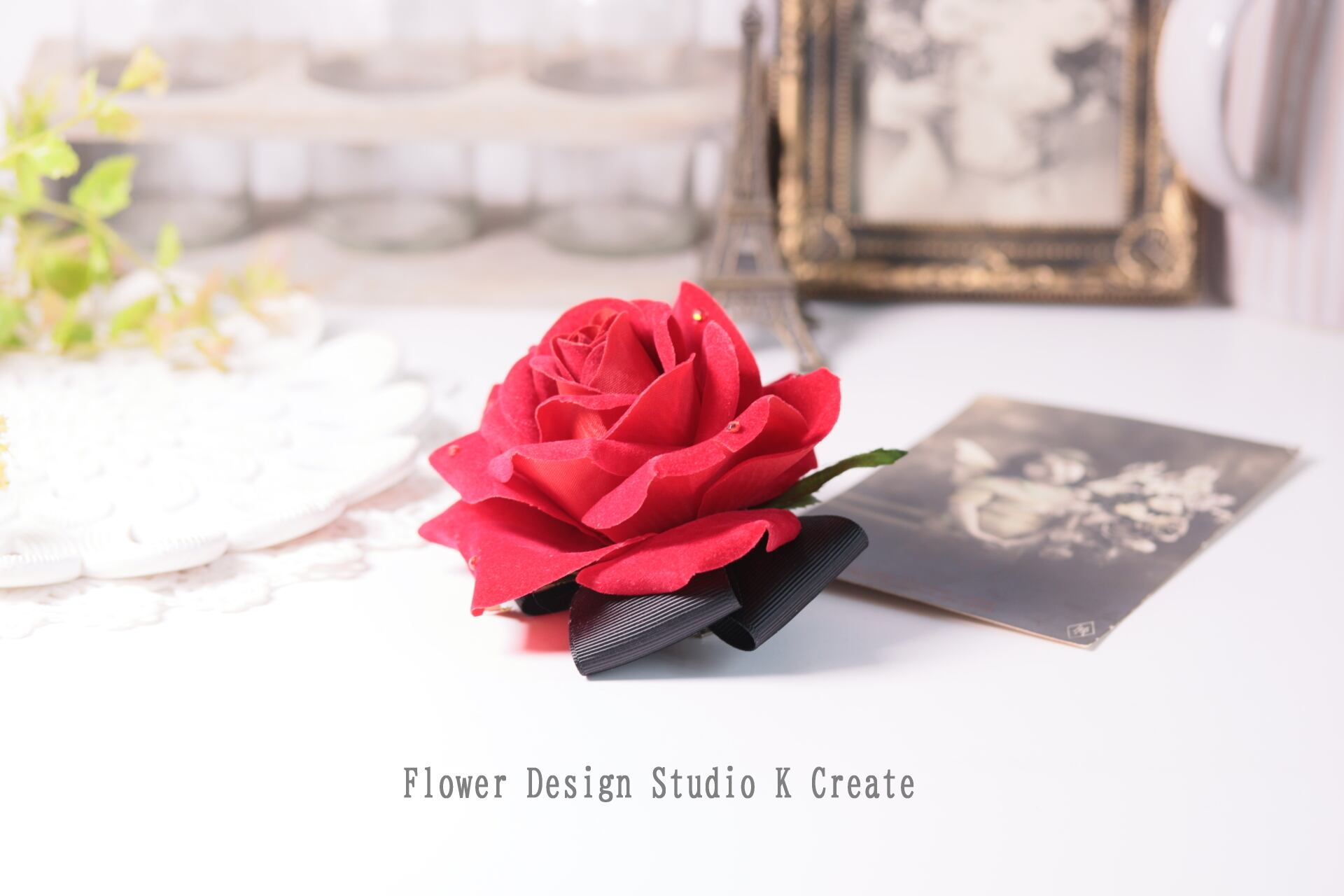 赤い薔薇とブラックリボンのヘアクリップ フラメンコ バレエ フローレス ダンス 髪飾り 赤い薔薇 キトリ エスメラルダ パキータ 社交ダンス フラメンコ
