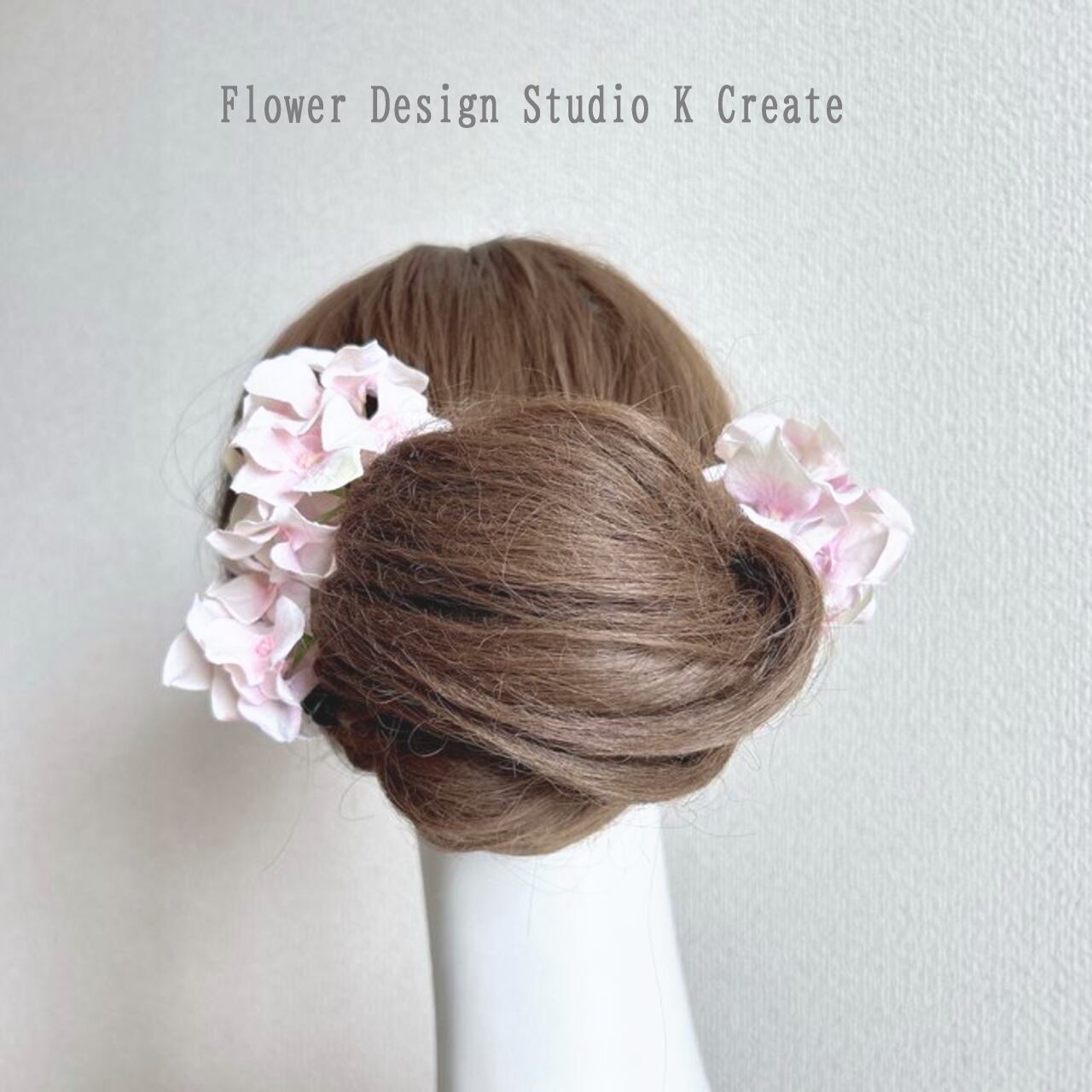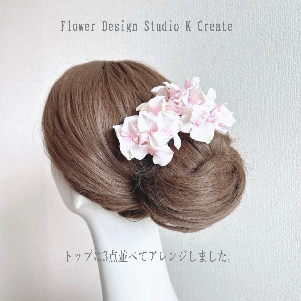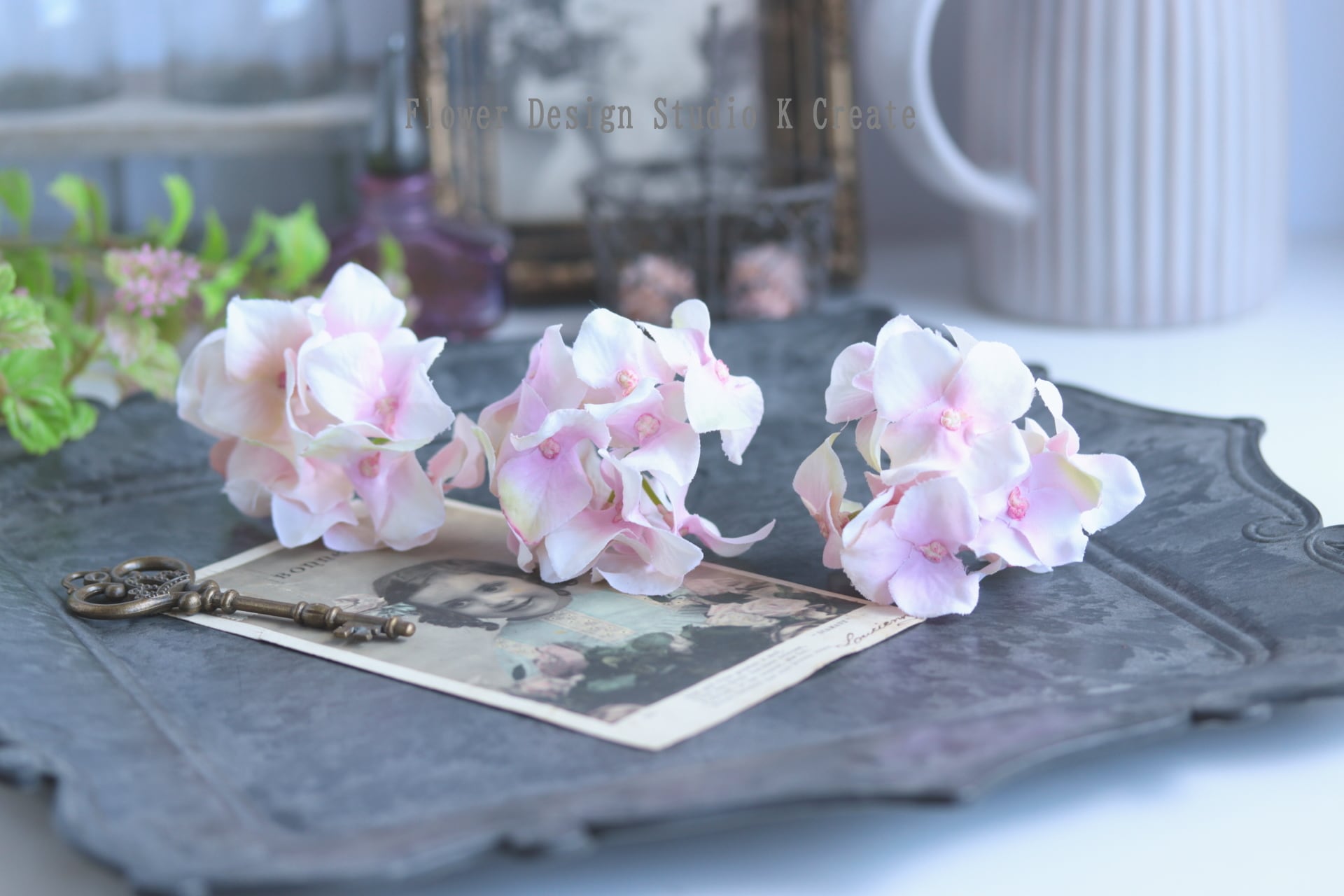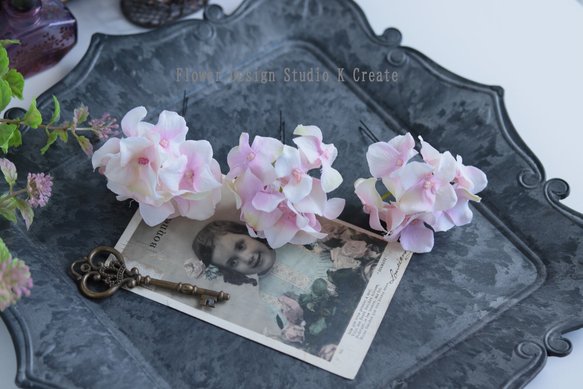 優しい色の紫陽花のUピン(エクリュピンク3本) 結婚式 入学式 卒業式 髪飾り 紫陽花 あじさい アジサイ ピンク ヘッドピース ヘッドドレス 髪飾り 成人式 袴 振袖 着物