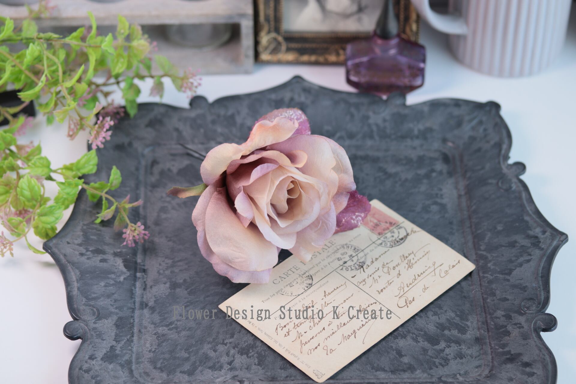 アンティークな雰囲気のの薔薇の髪飾りです。