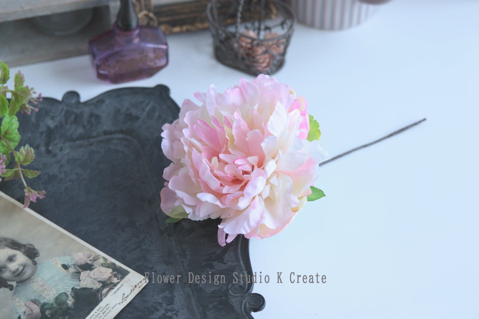 桜色のピオニーの髪飾り(シングルワイヤー仕上げ) ピンク ピオニー 芍薬 ダンス 髪飾り フラメンコ ヘッドピース ヘッドドレス iピン仕様 ピック仕様 フローレス