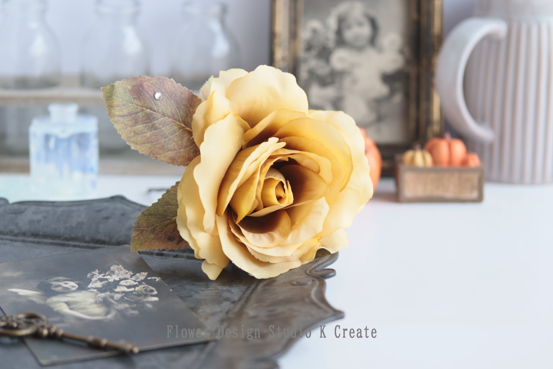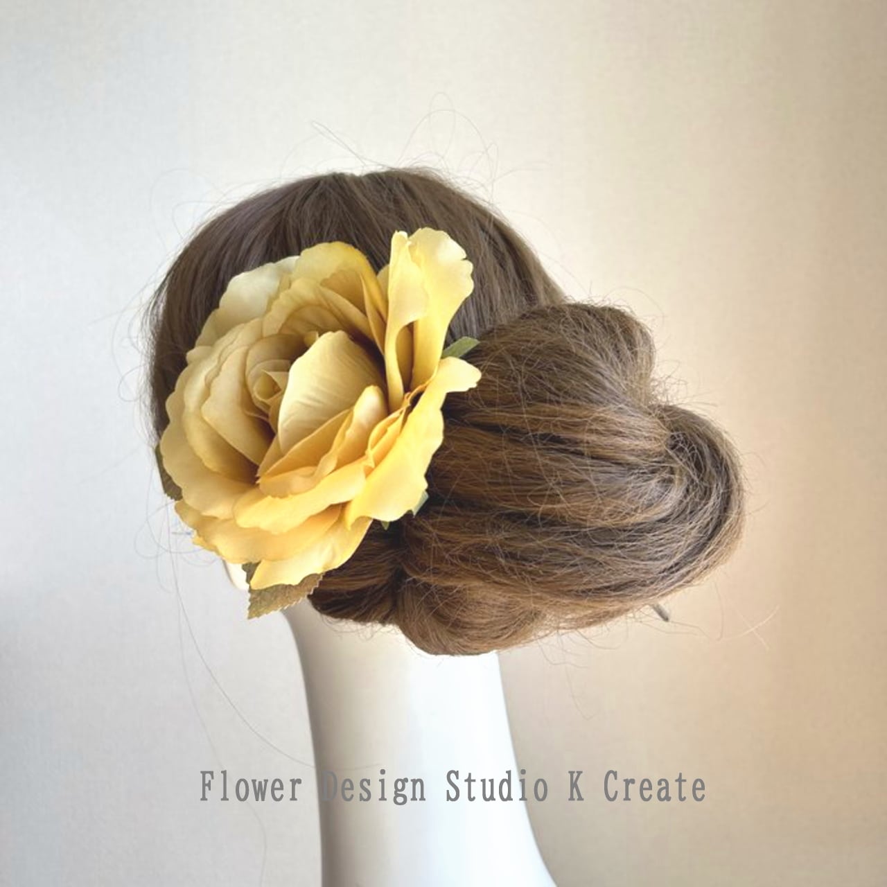 フラメンコ・ダンス髪飾りに♡マスタードイエローの薔薇の髪飾り フラメンコ フローレス ワイヤー仕上げ 薔薇 13cm 黄色 マスタード イエロー ヘッドドレス ダンス 髪飾り 頭飾り 花飾り