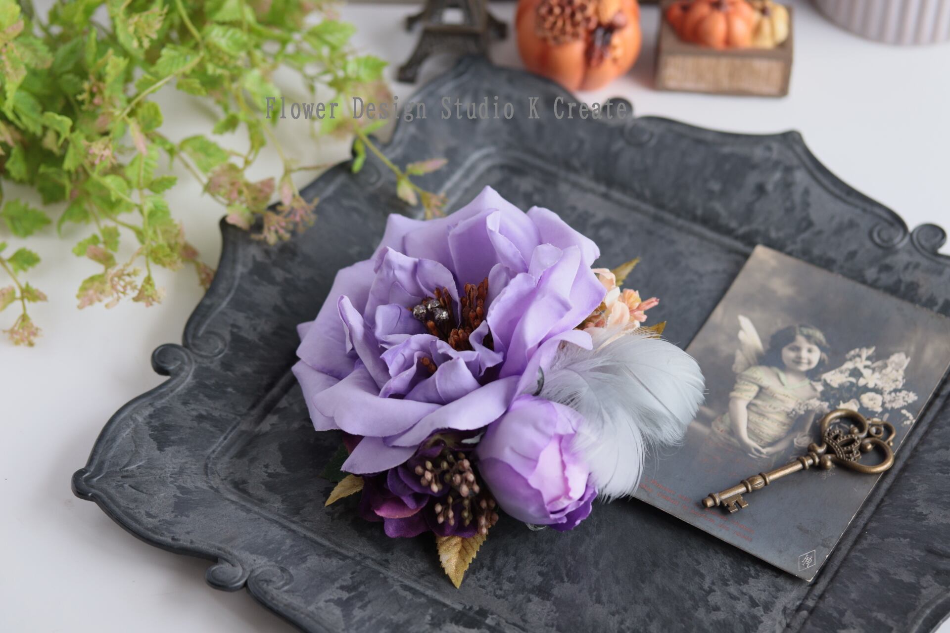 ラベンダー色の大輪の薔薇のヘアクリップ 紫 パープル ラベンダー色 薄紫 バラ ダンス 髪飾り フラメンコ フローレス フラメンコ小物 花飾り 頭飾り flamenco