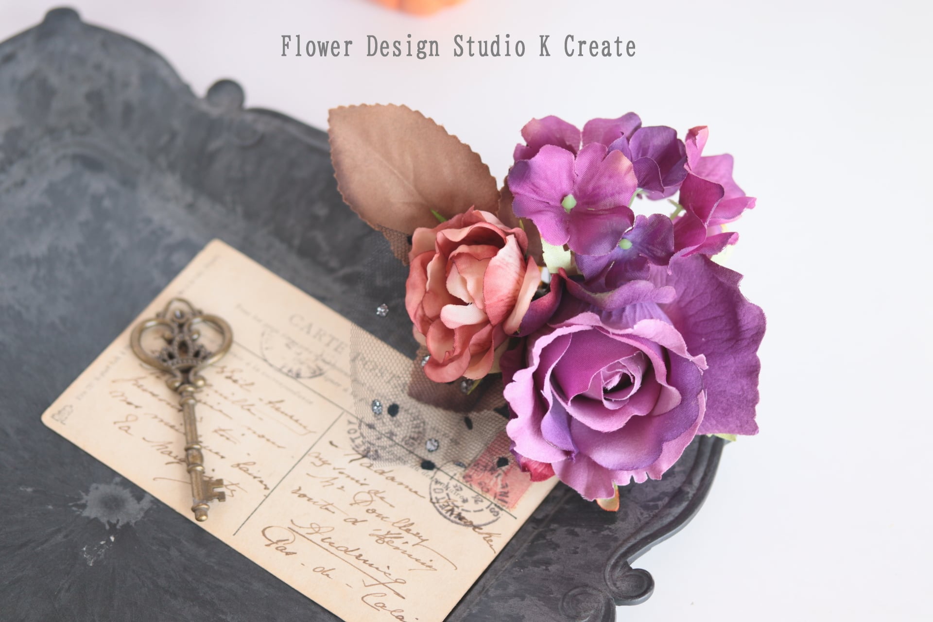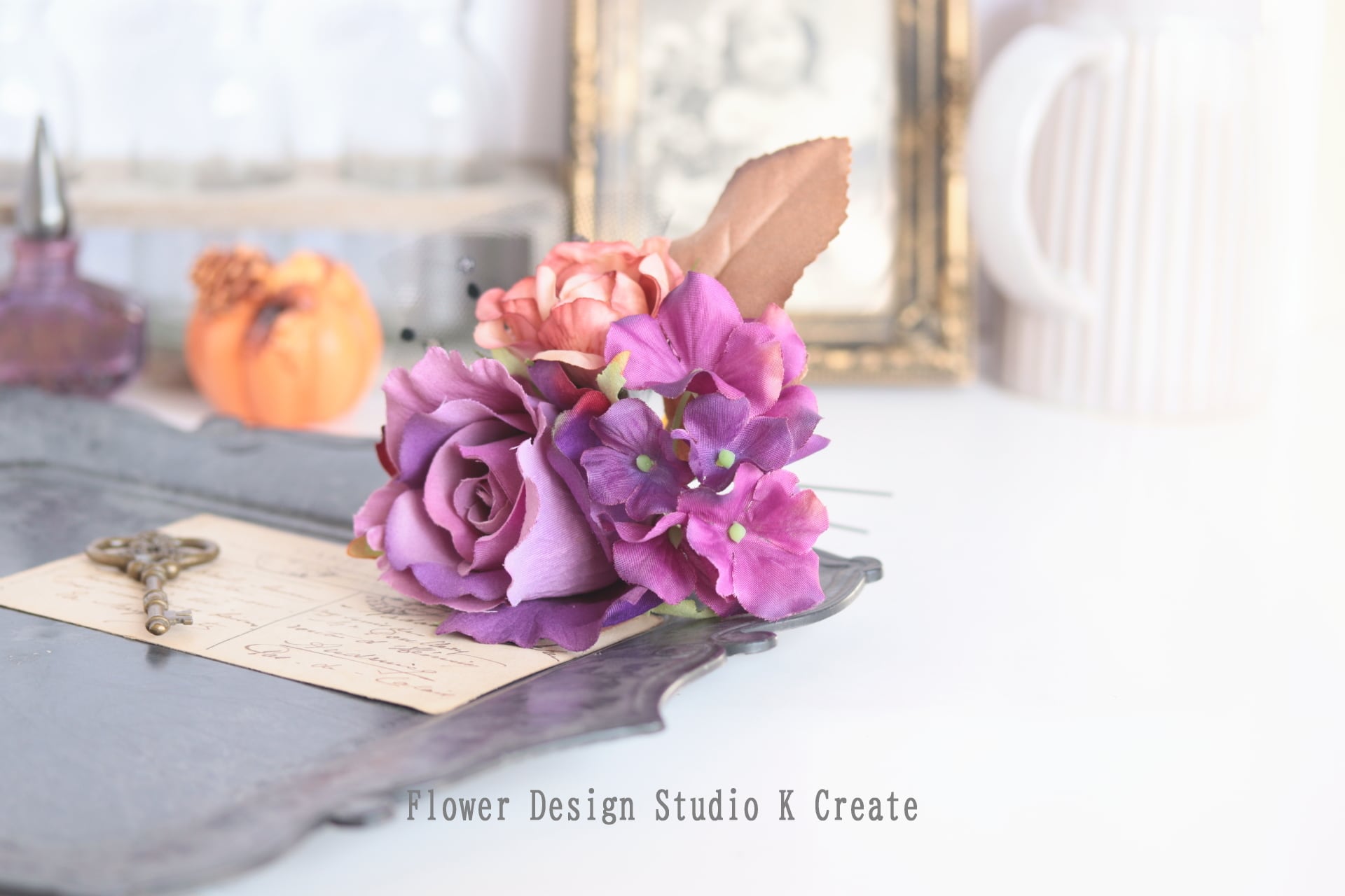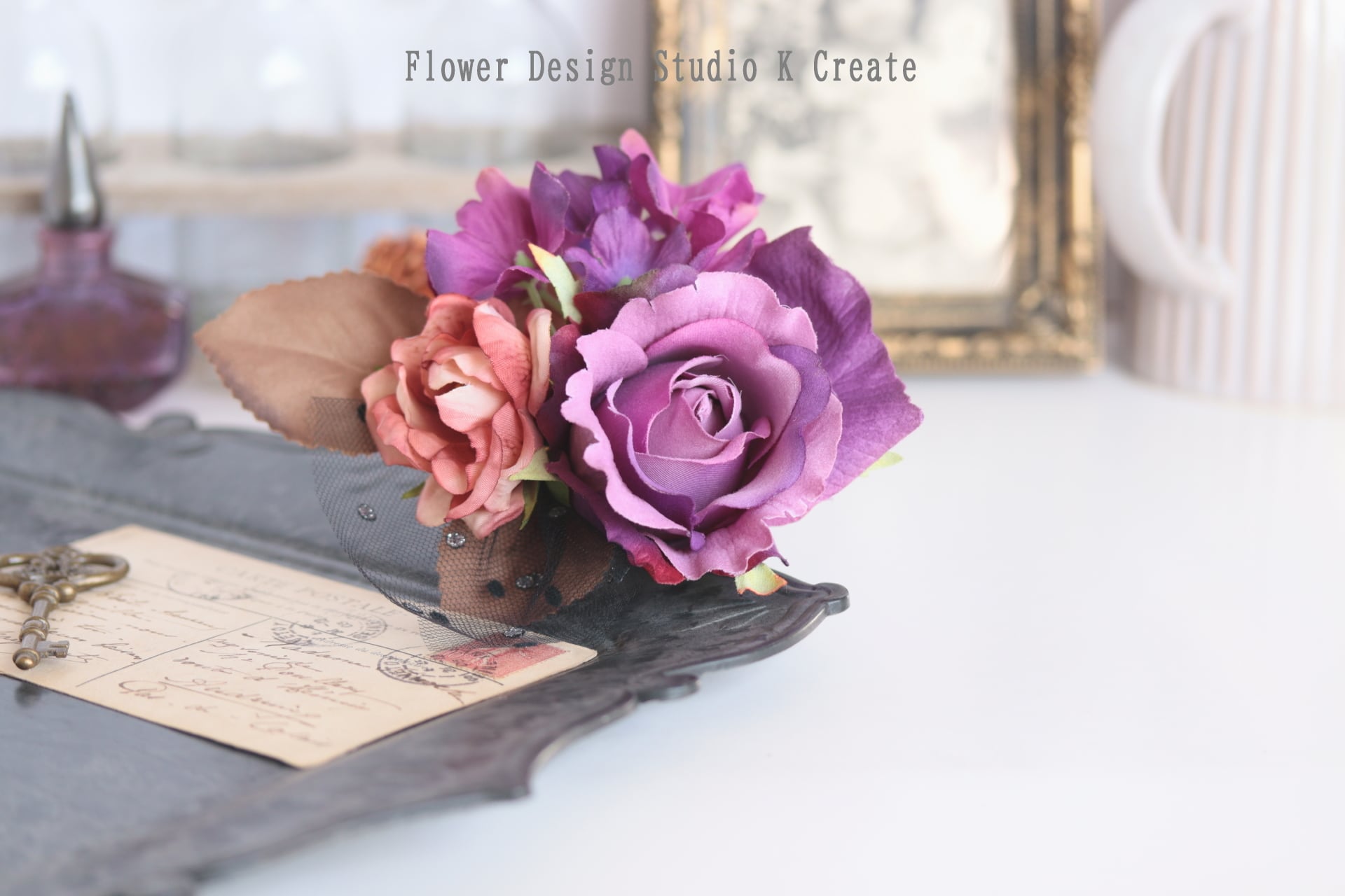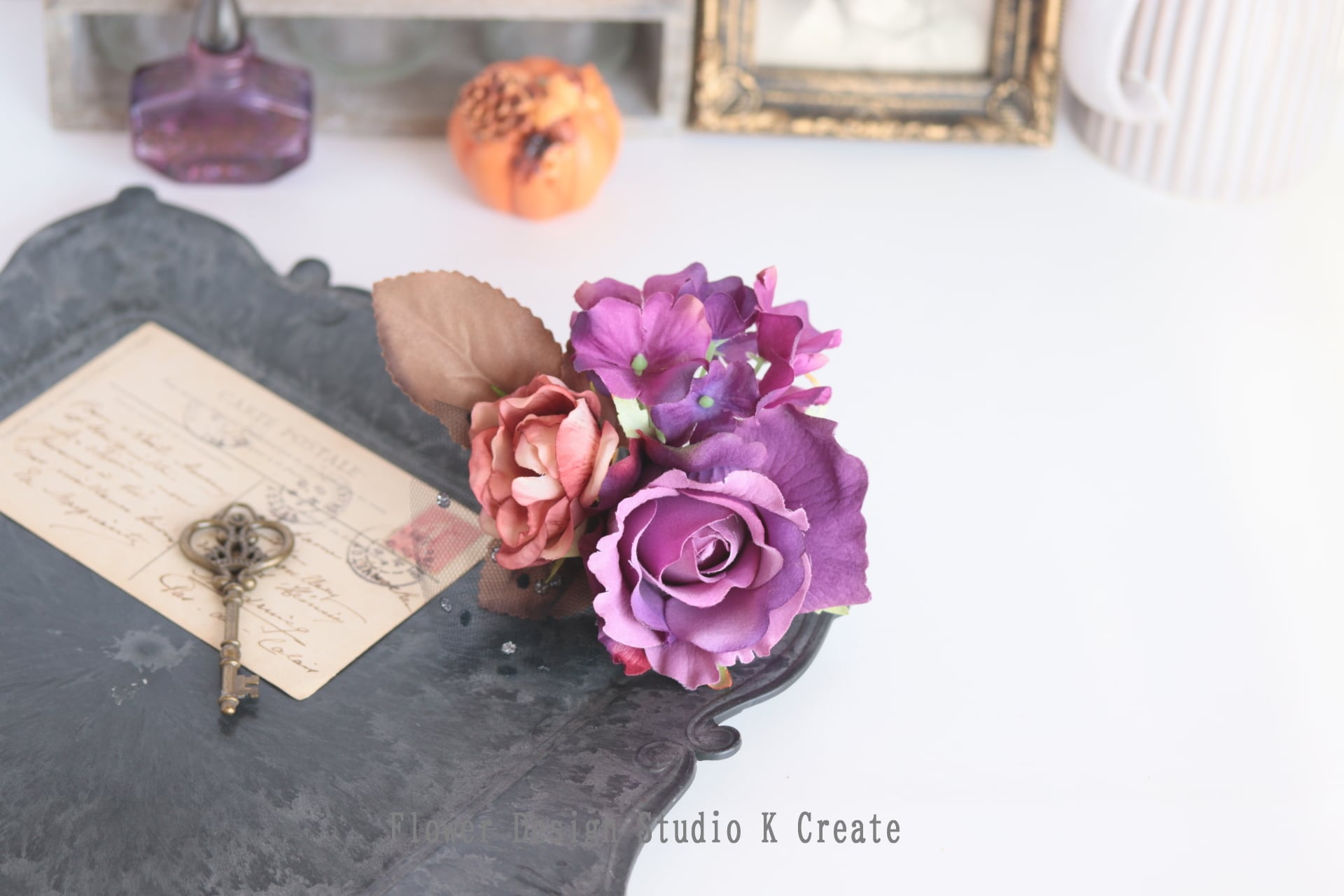 パープルの薔薇と秋薔薇の髪飾り フラメンコ フローレス ダンス 髪飾り チュール 発表会 秋 パープル 紫 バラ ダンス 髪飾り ハロウィン 秋色