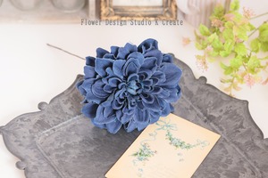 インディゴデニムのダリアの髪飾り(シングルワイヤー仕様) デニム 青 ブルー デニムブルー フラメンコ フローレス ブルー 髪飾り ダンス フラメンコ小物 ダリア インディゴブルー