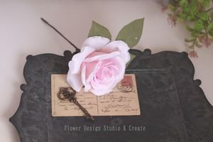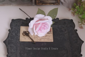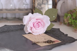 ペールピンクの薔薇と葉っぱの髪飾り(シングルワイヤー仕様) フラメンコ ダンス フォーマル 結婚式 袴 髪飾り 花飾り フローレス ピンク 成人式 お花の髪飾り