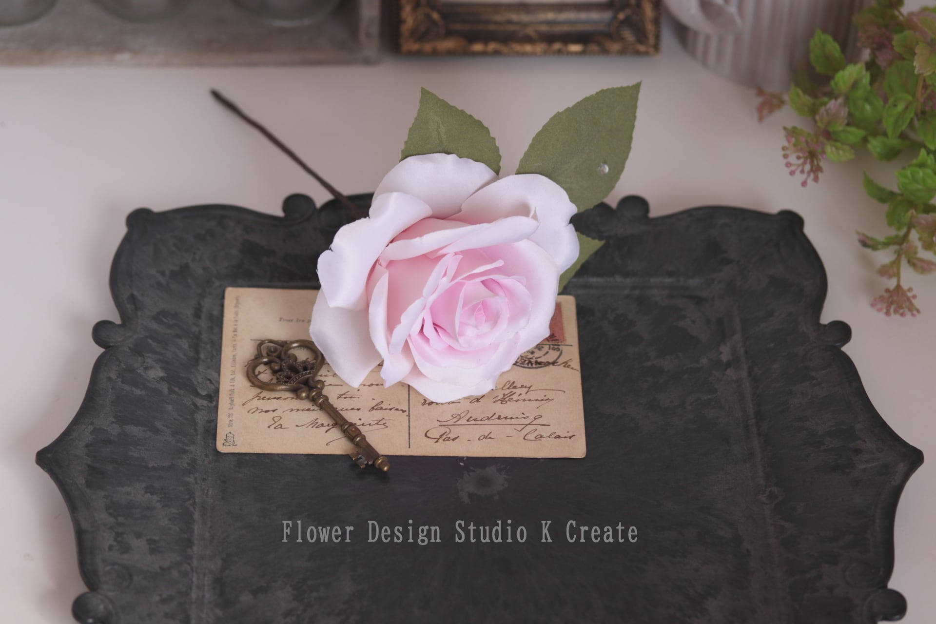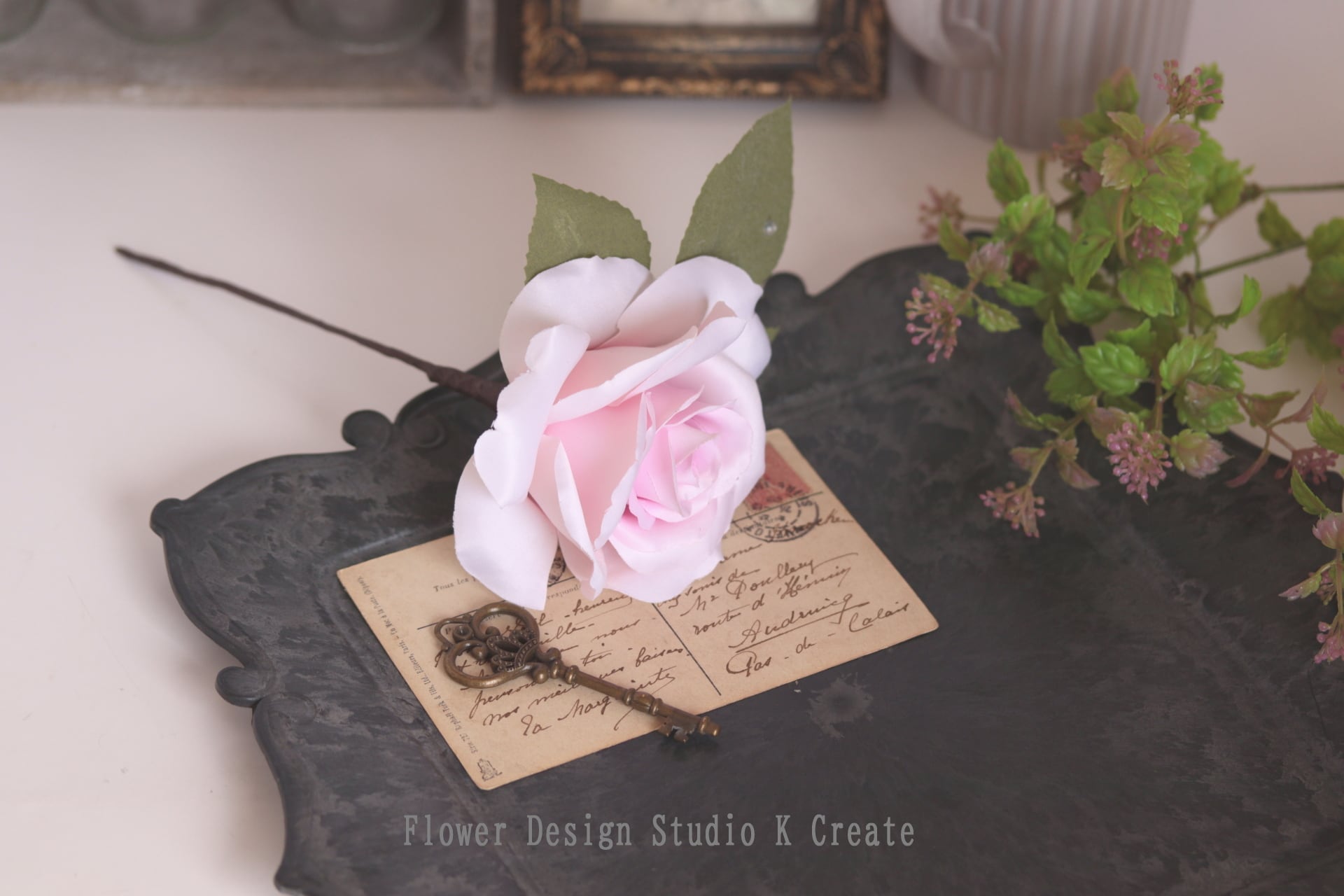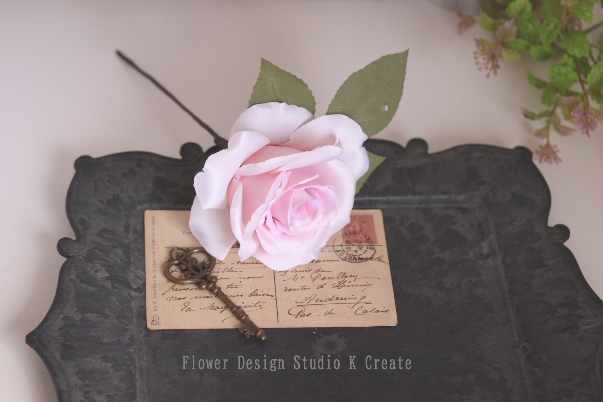 薔薇のカラーに合わせ、