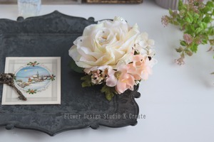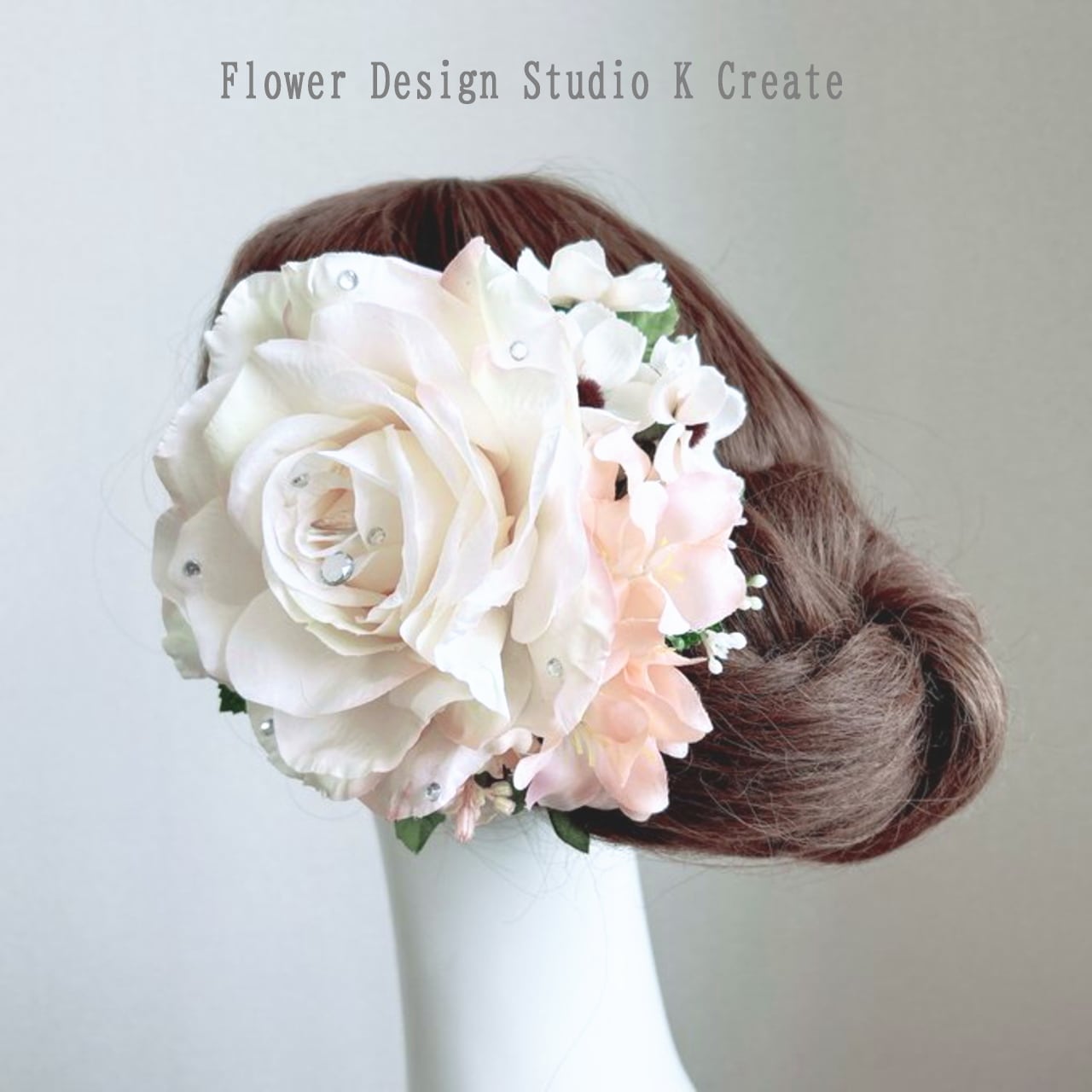 大輪のエクリュローズとアネモネのヘアクリップ ダンス フラメンコ 成人式 袴 着物 結婚式 ヘアクリップ 髪飾り ウェディング バラ エクリュ ピーチ アネモネ バラ