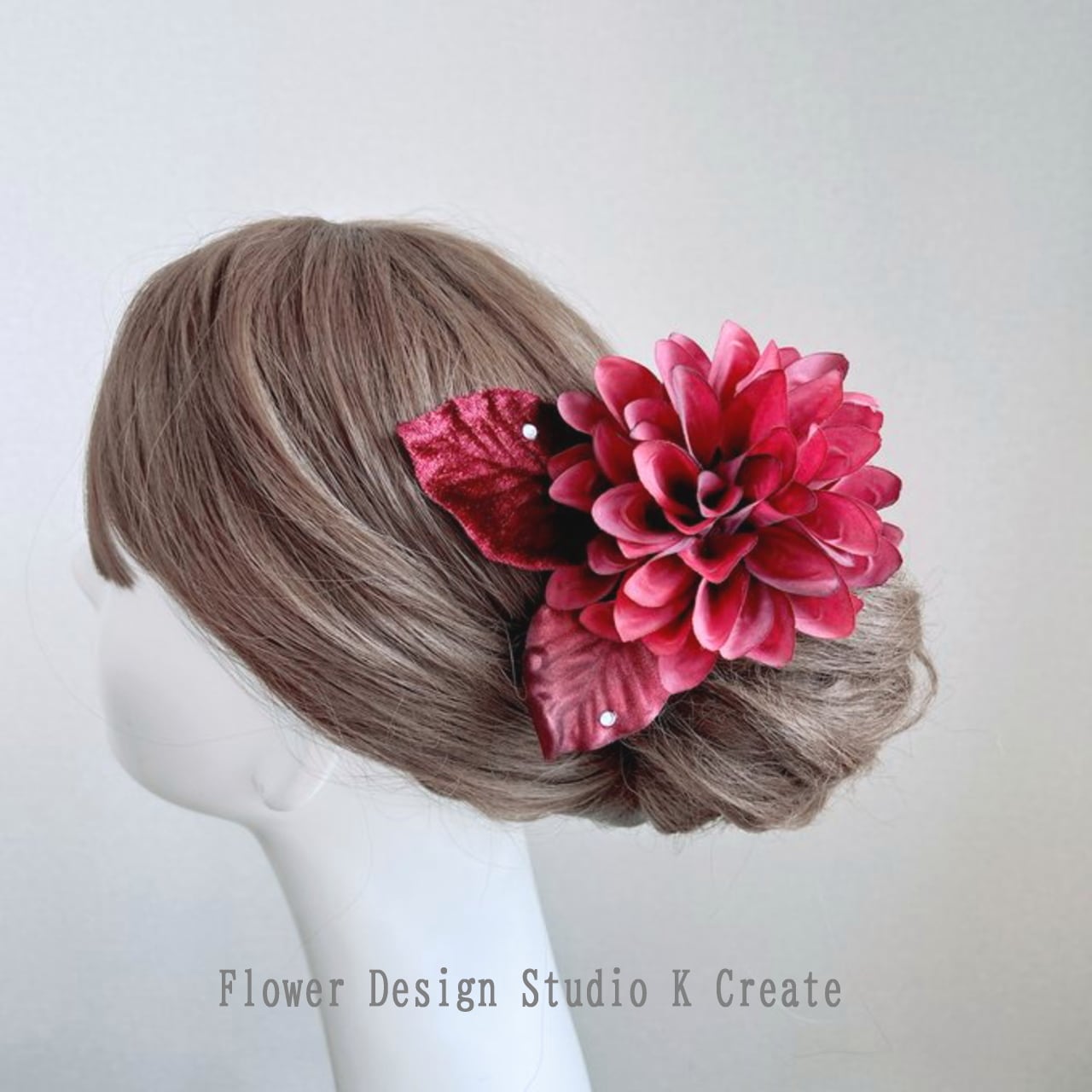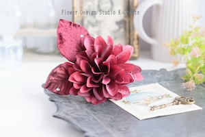 ボルドーのダリアとベロアの葉っぱの髪飾り(シングルワイヤー仕様) フラメンコ ダンス フォーマル 結婚式 袴 髪飾り 花飾り フローレス ライトストーン 入学式 卒業式 成人式 ボルドー