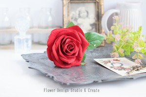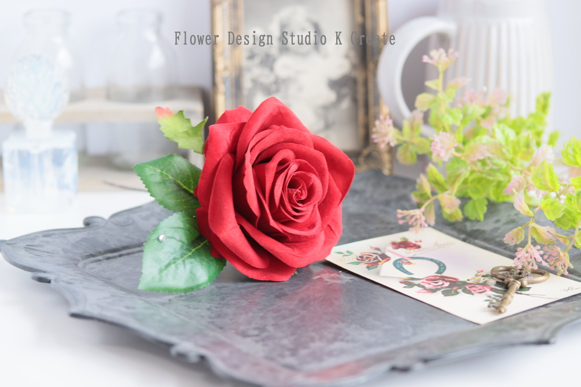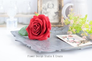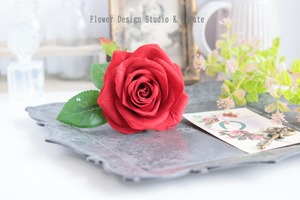 10㎝の赤い薔薇と朝露の葉っぱの髪飾り(シングルワイヤー仕様) 花径10cm フローレス 赤い薔薇 髪飾り フラメンコ ベリーダンス バレエ ダンス