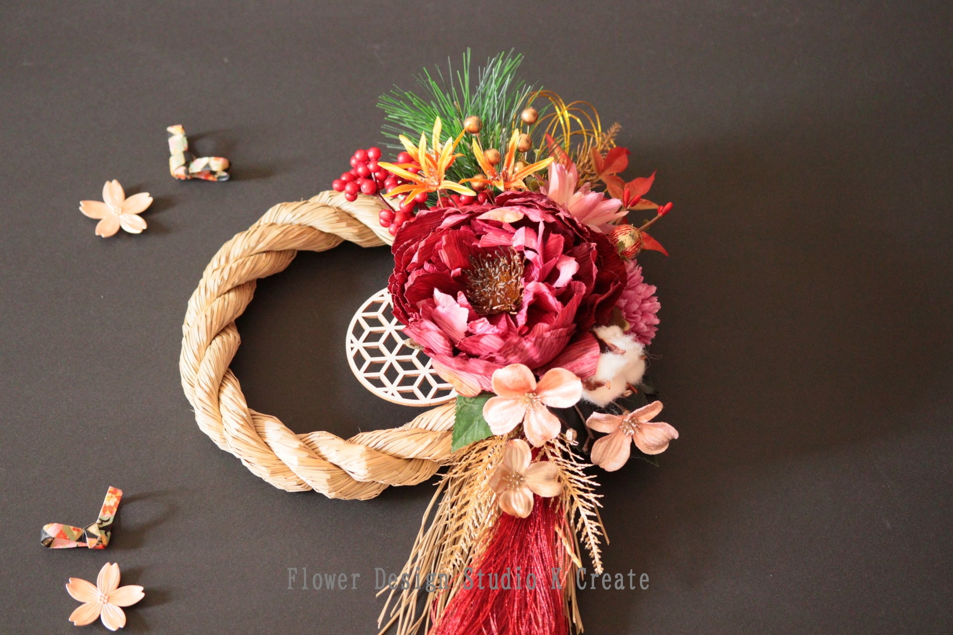 2026年★特大・ピオニーとタッセルのしめ縄飾り(大サイズ) お正月飾り モダンしめ縄 しめ縄飾り