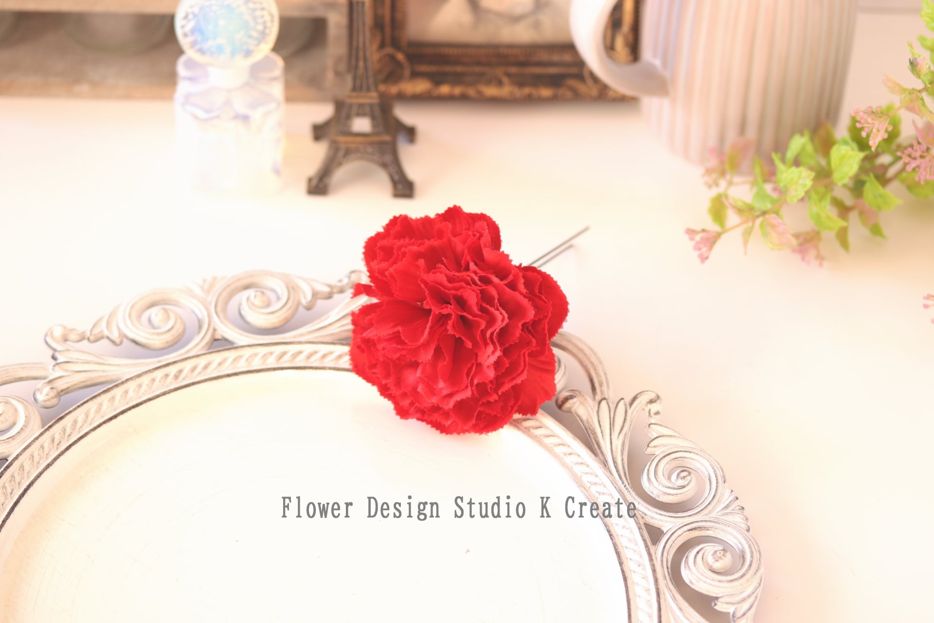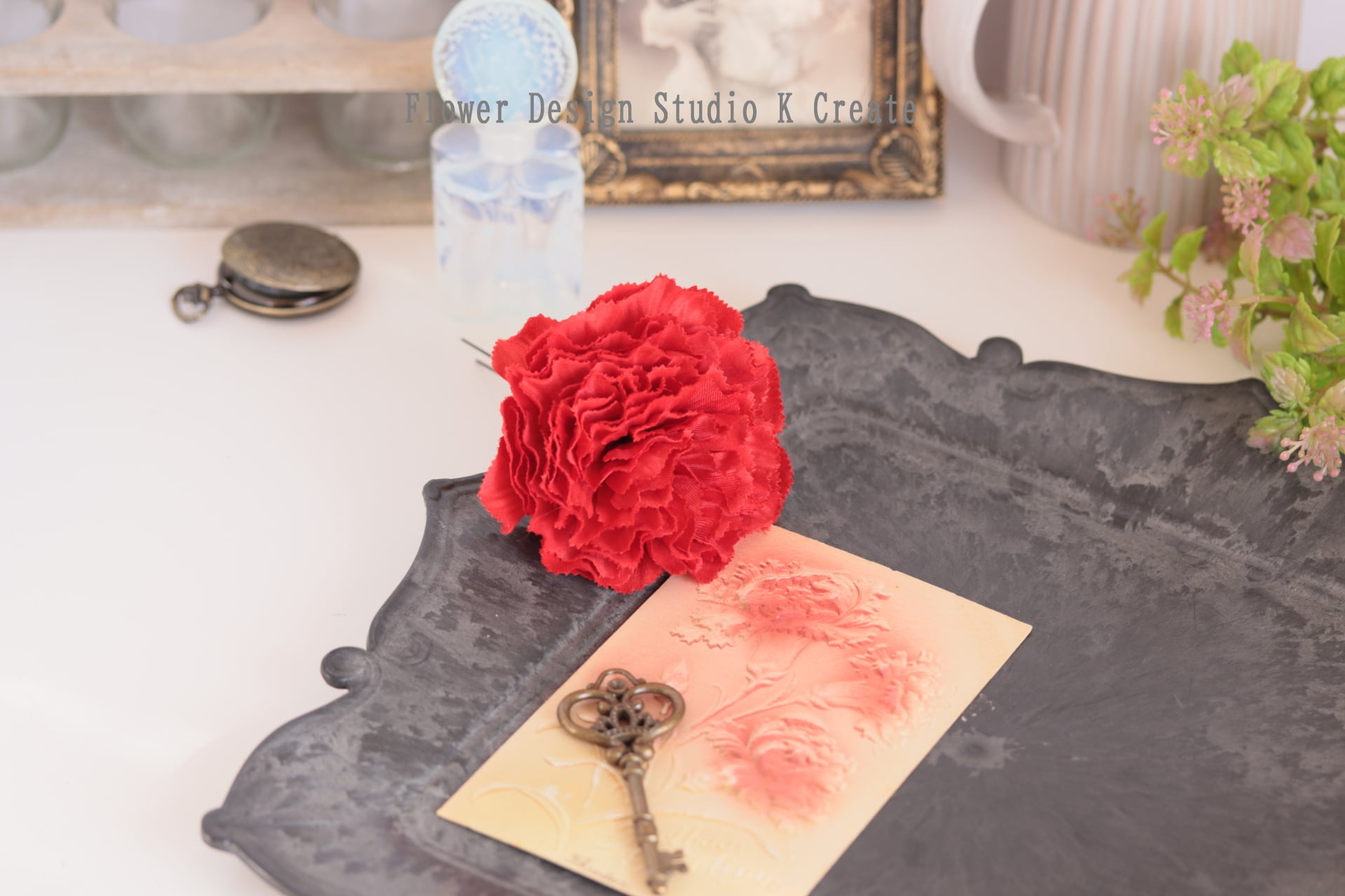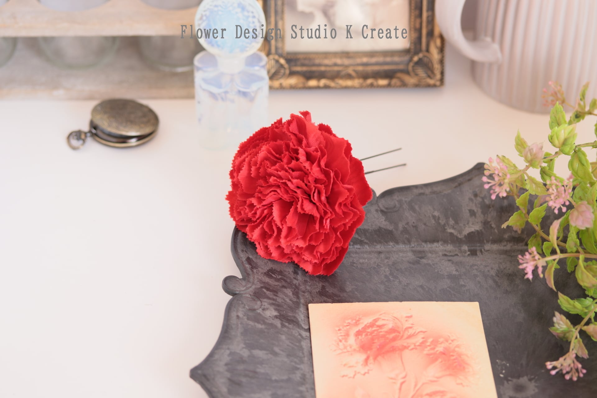 赤いカーネーションの髪飾りです。