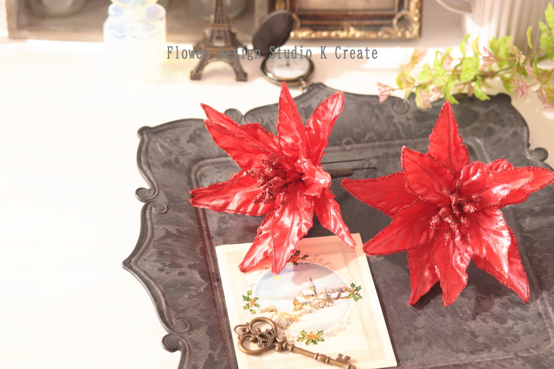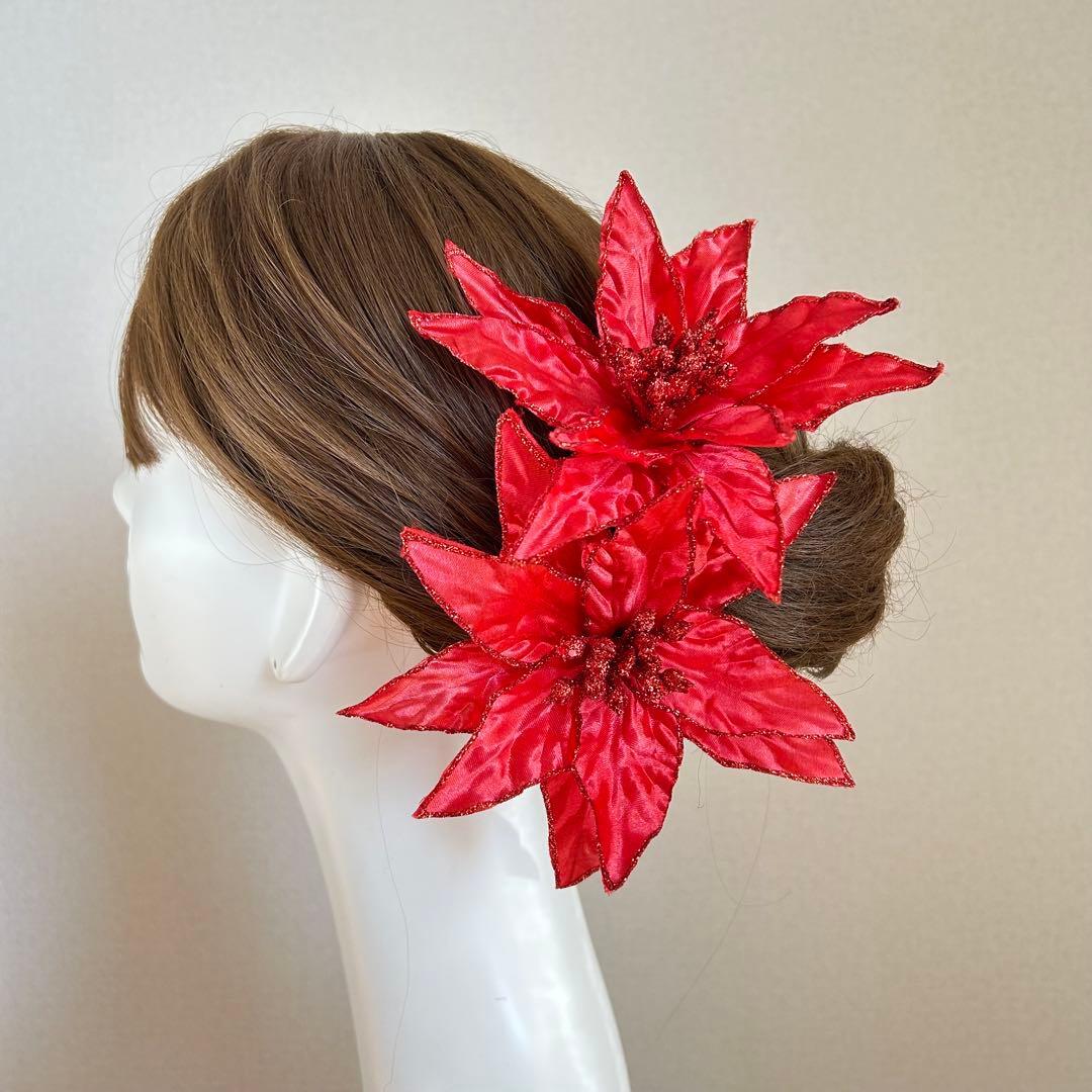 #ヘッドアクセ #ヘッドドレス #成人式髪飾り #赤いポインセチア
