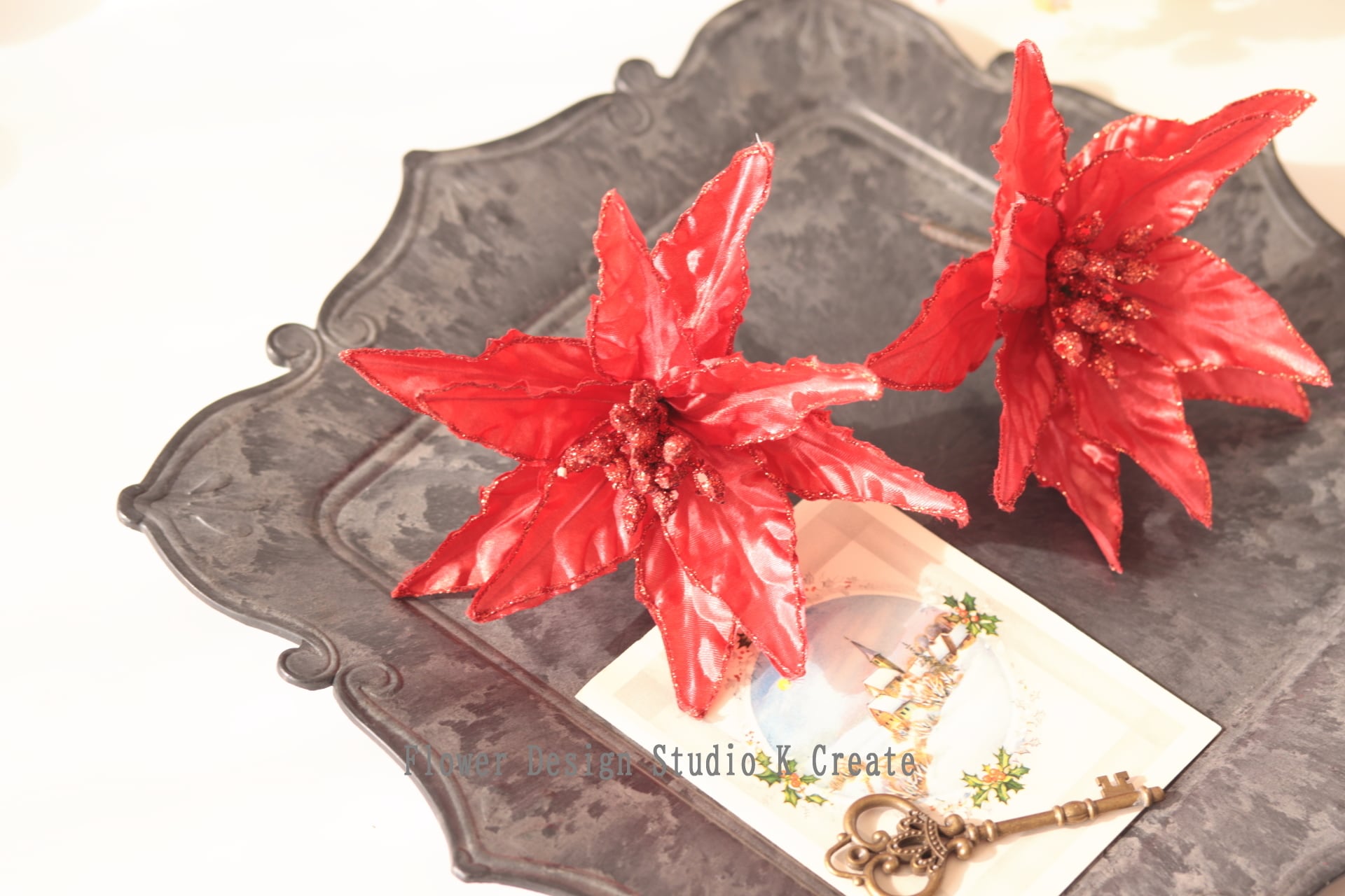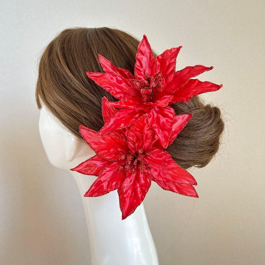 赤いポインセチアのヘッドピース クリスマス 赤いポインセチア 発表会 フラダンス フラメンコ ダンス パーティー 赤