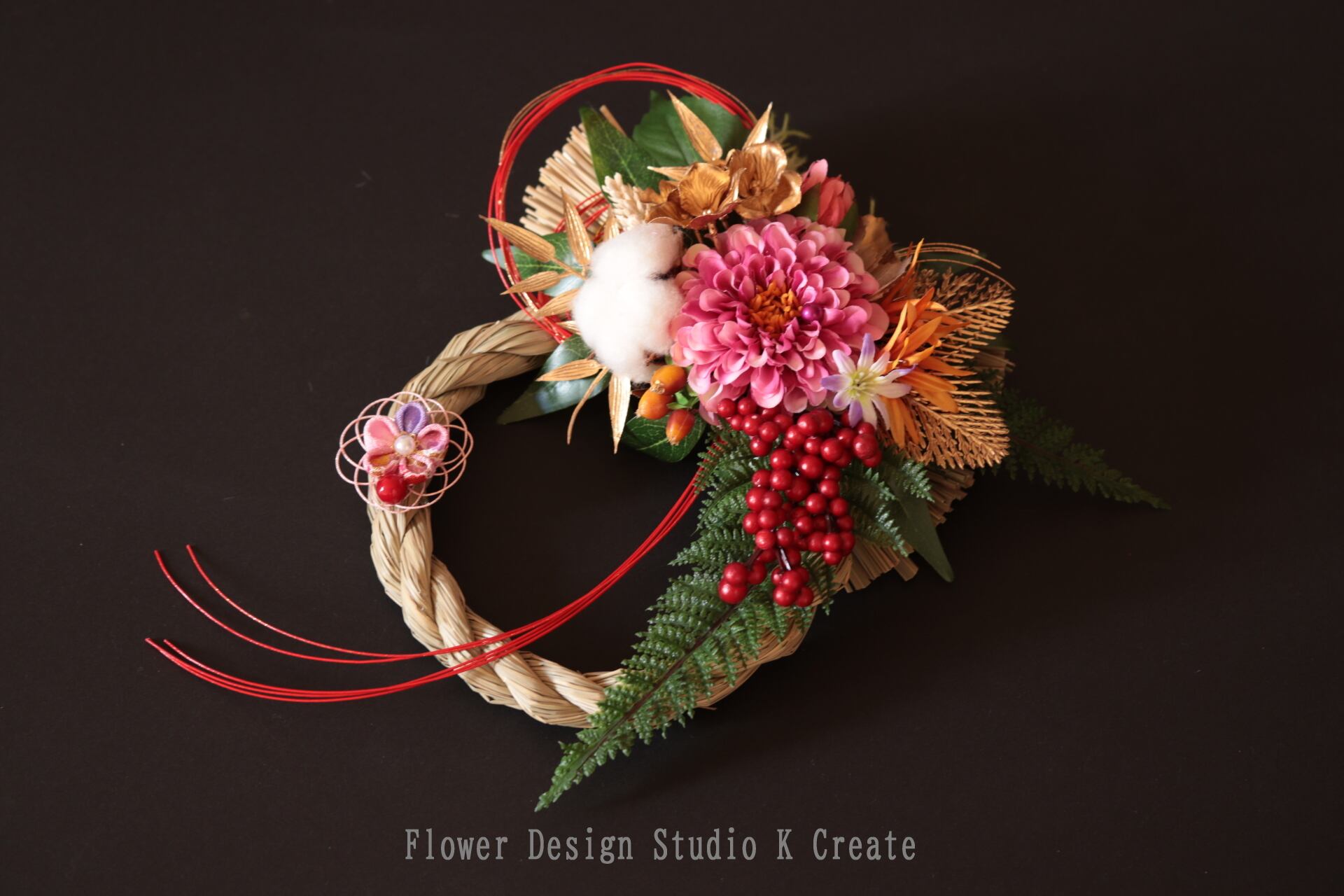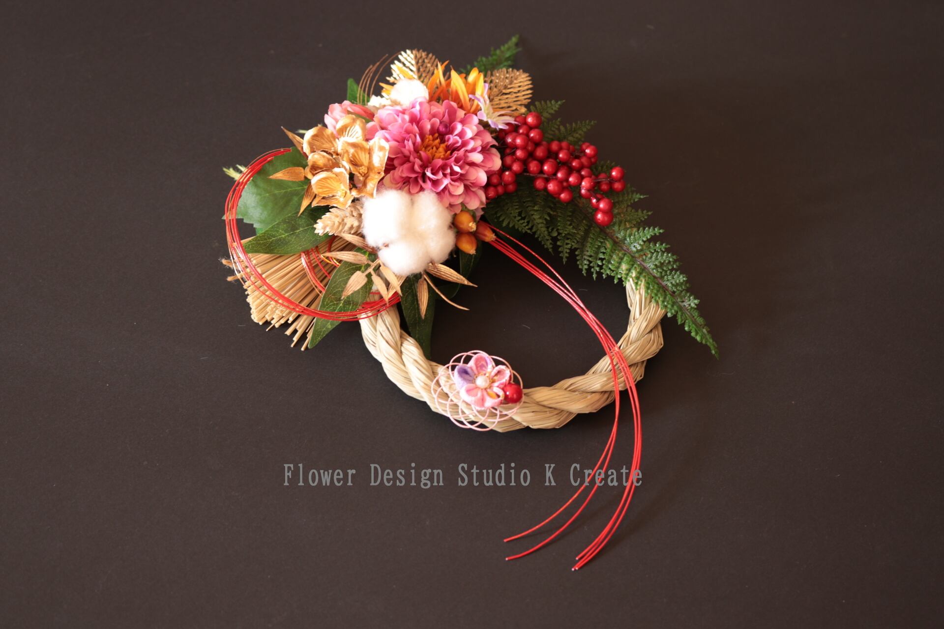 #お正月飾り #しめ縄リース #ダリア #ピンク