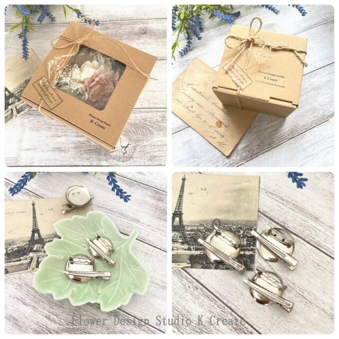 ●コサージュ裏面の金具は、制作時期によって