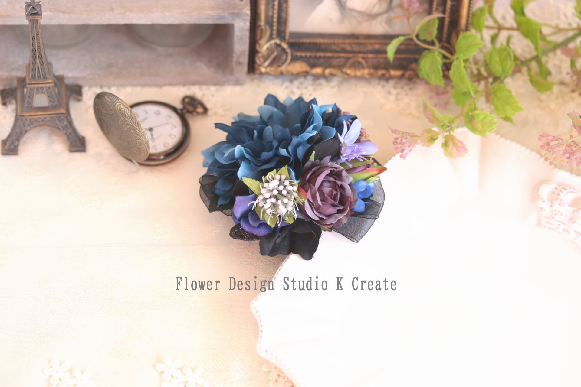 ネイビーのコサージュは、