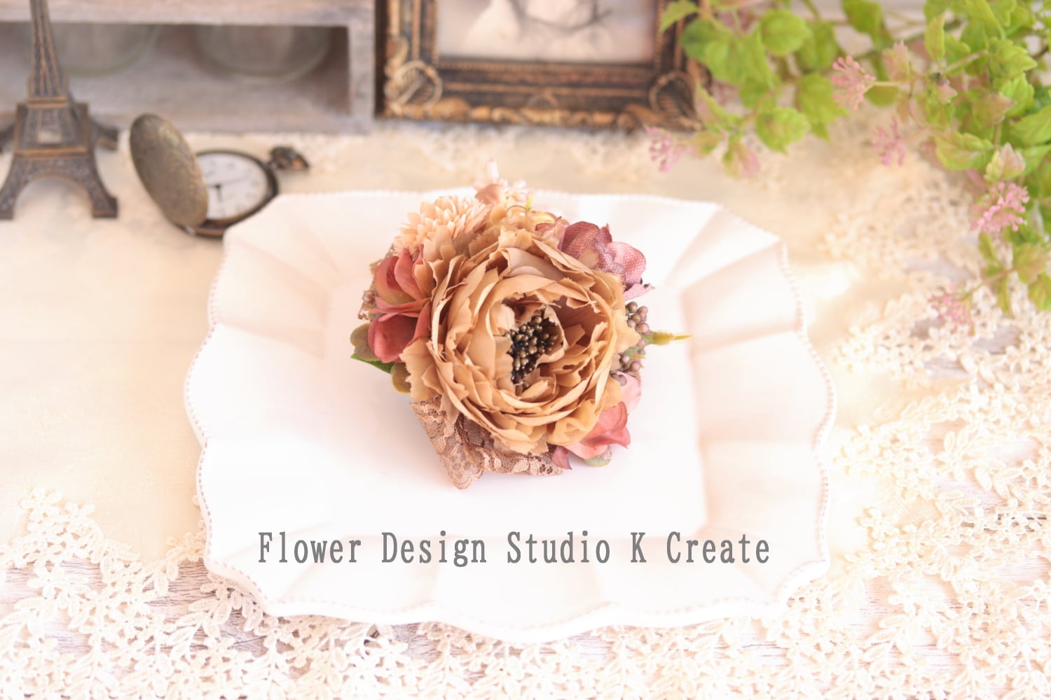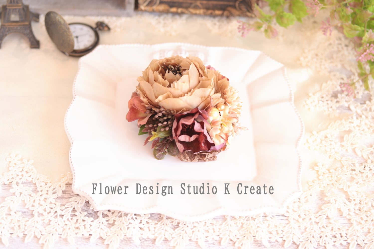 #茶色のコサージュ #レースリボン