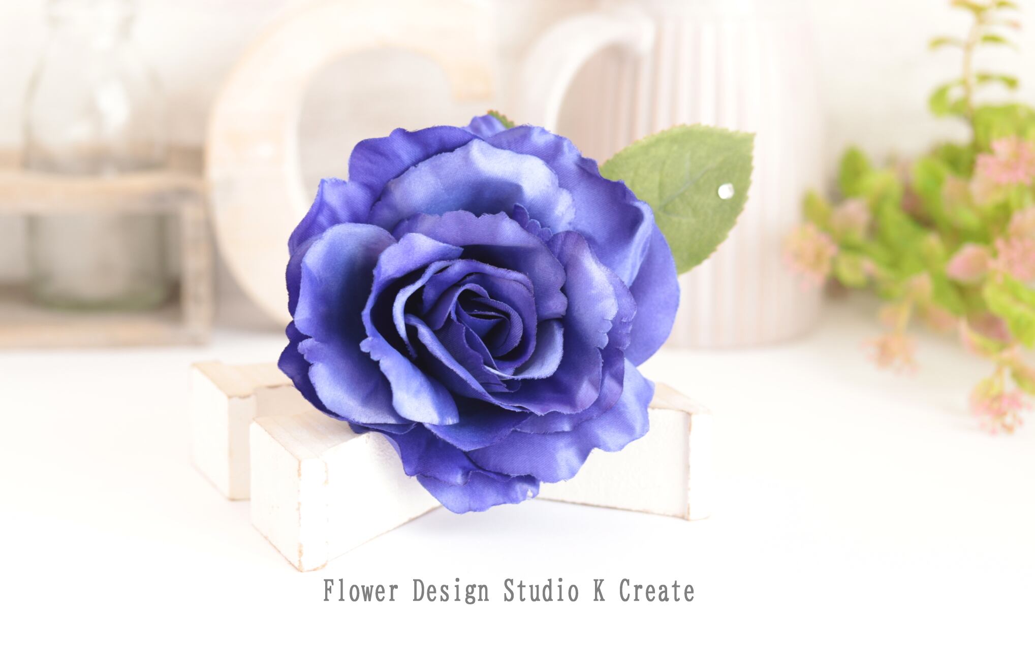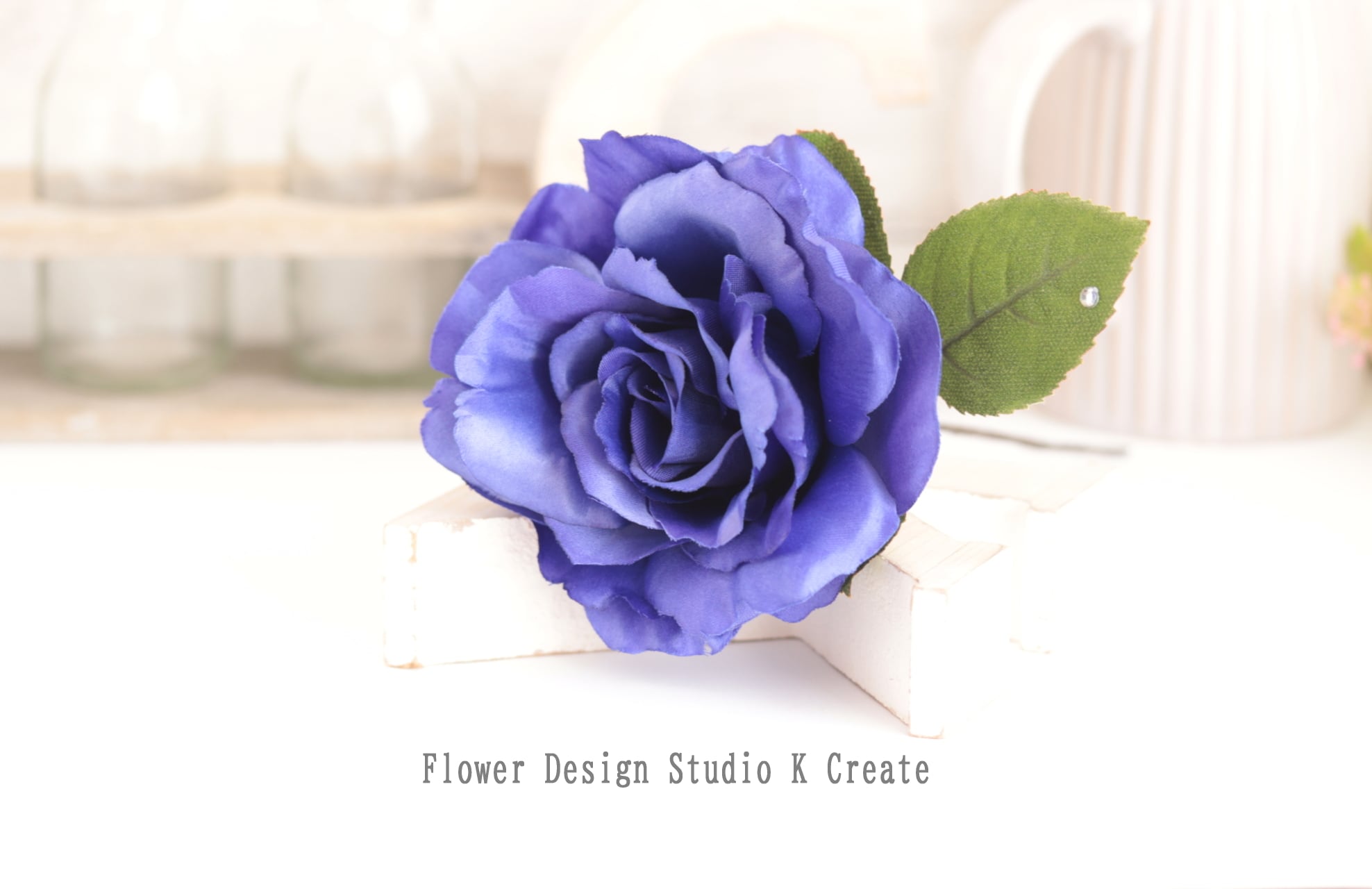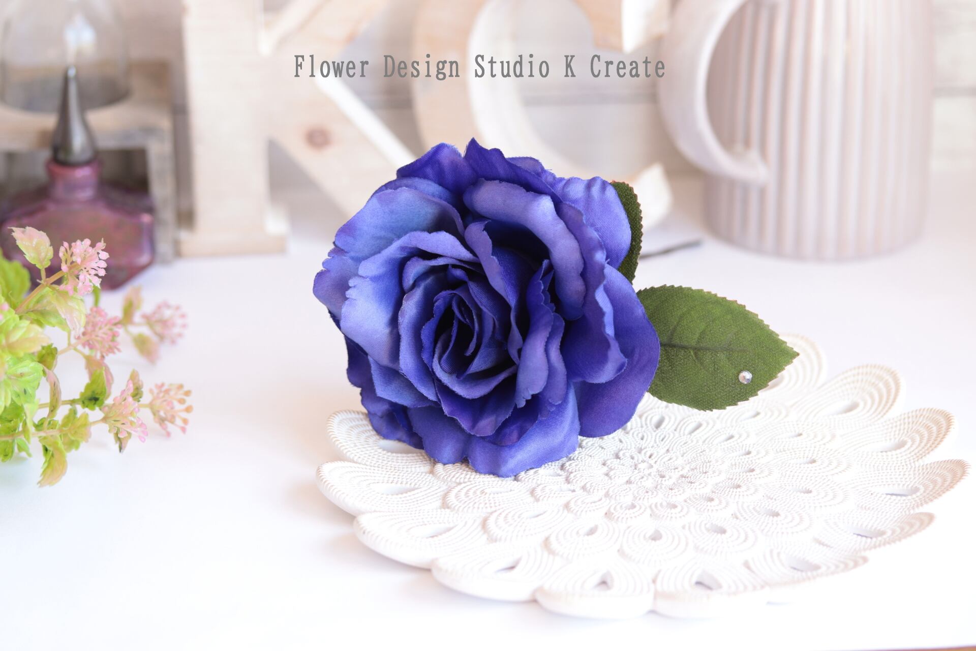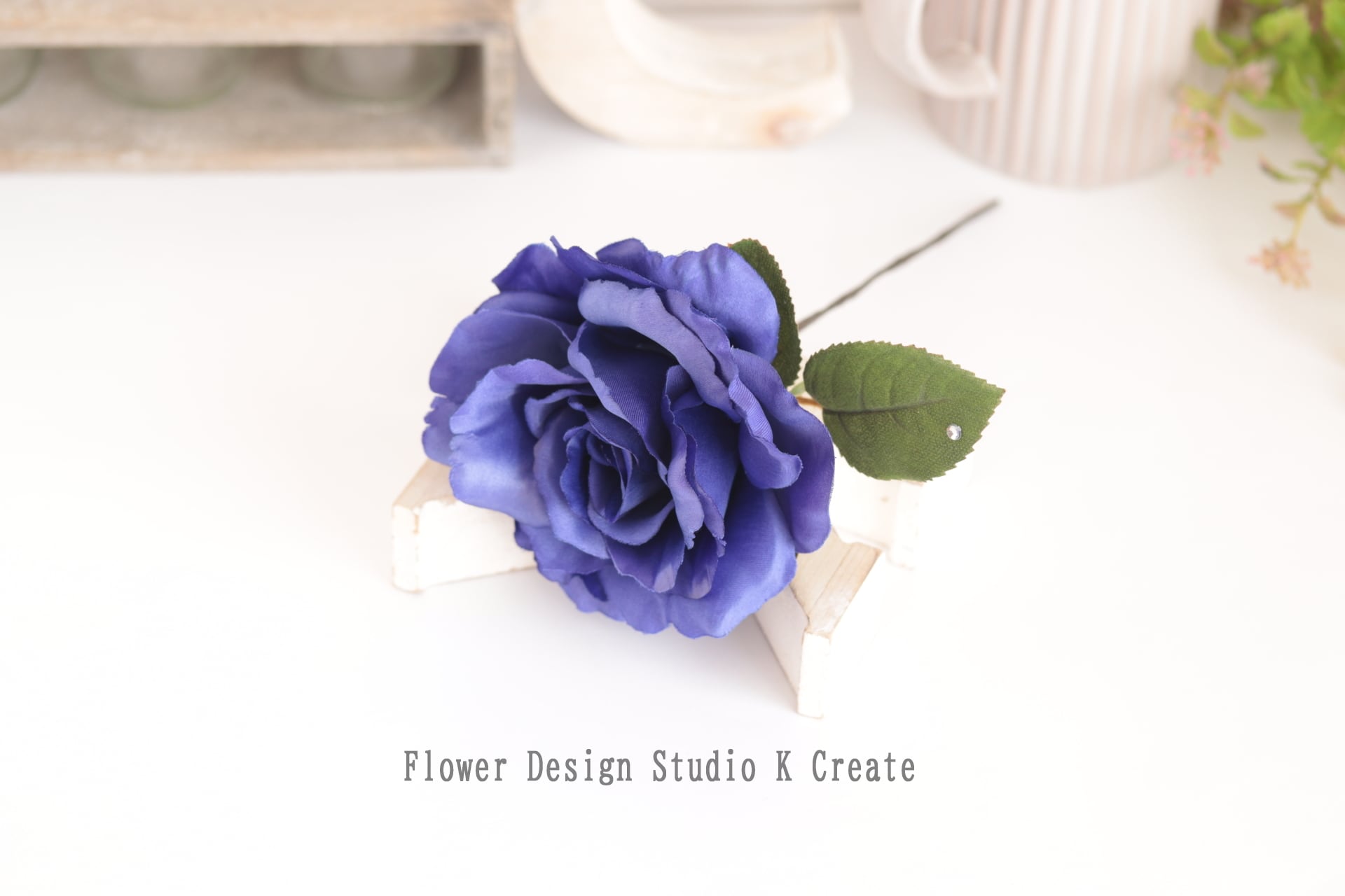 青い薔薇と朝露の葉っぱの髪飾り(シングルワイヤー仕様) バラ ローズ 青 ブルー フラメンコ フローレス ロイヤルブルー バラ ローズ