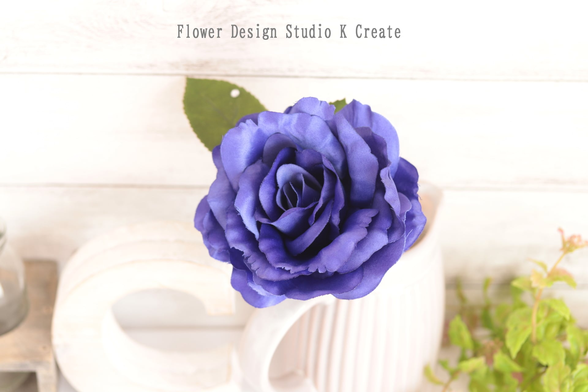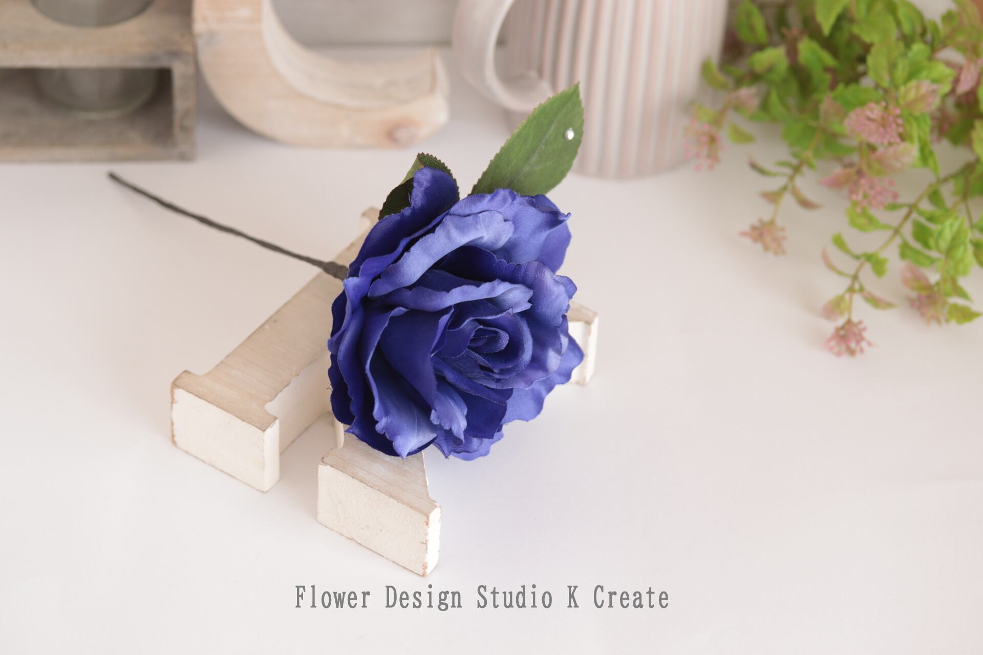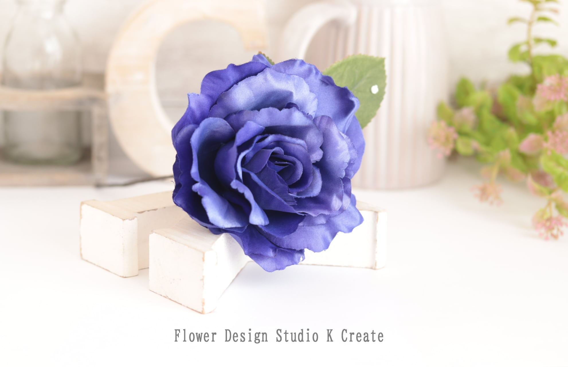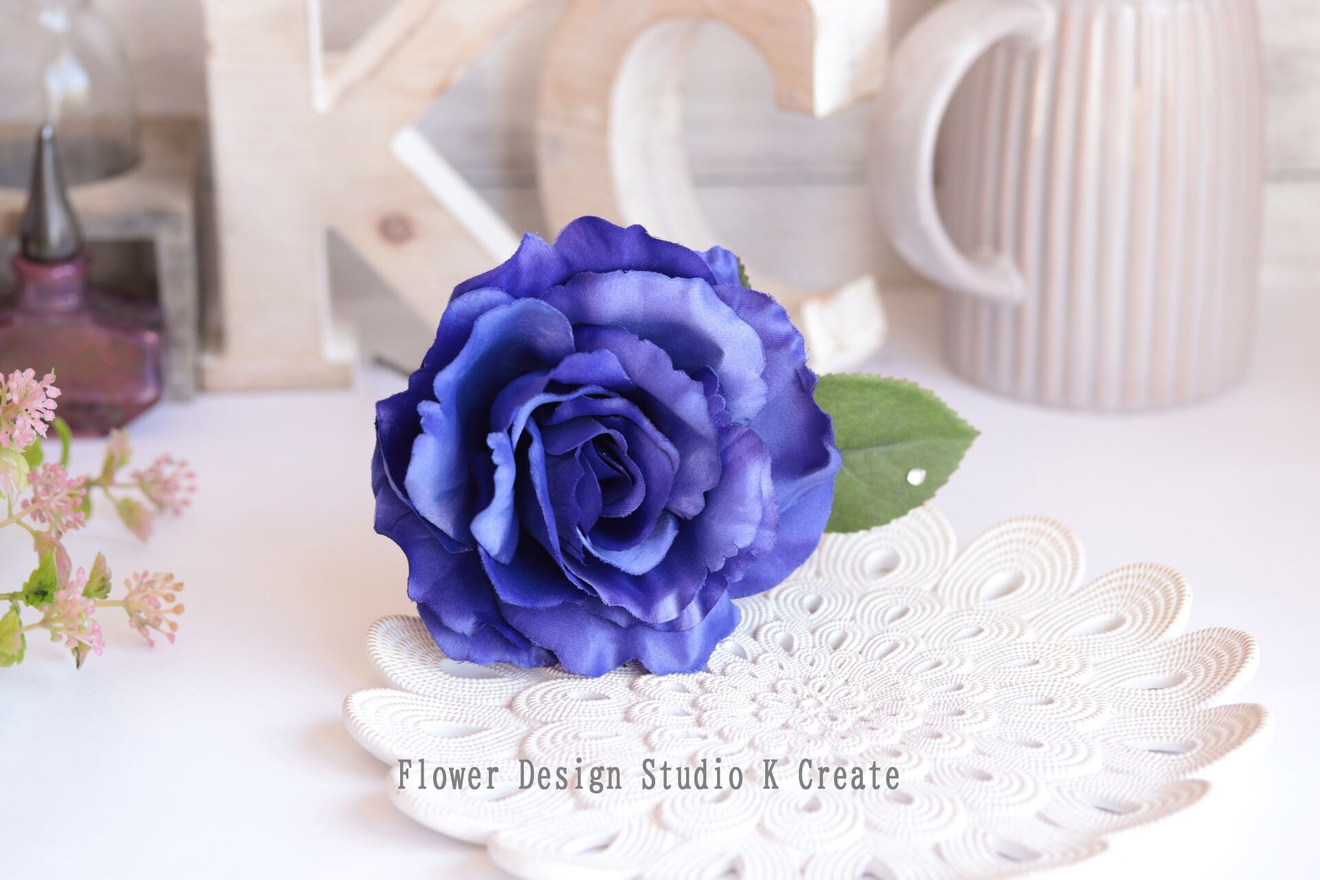 青い薔薇と朝露の葉っぱの髪飾り(シングルワイヤー仕様) バラ ローズ 青 ブルー フラメンコ フローレス ロイヤルブルー バラ ローズ