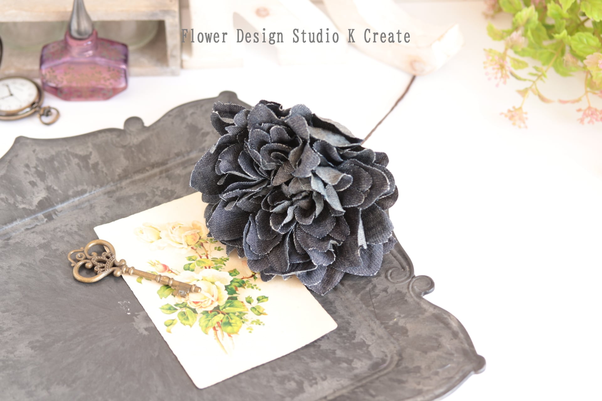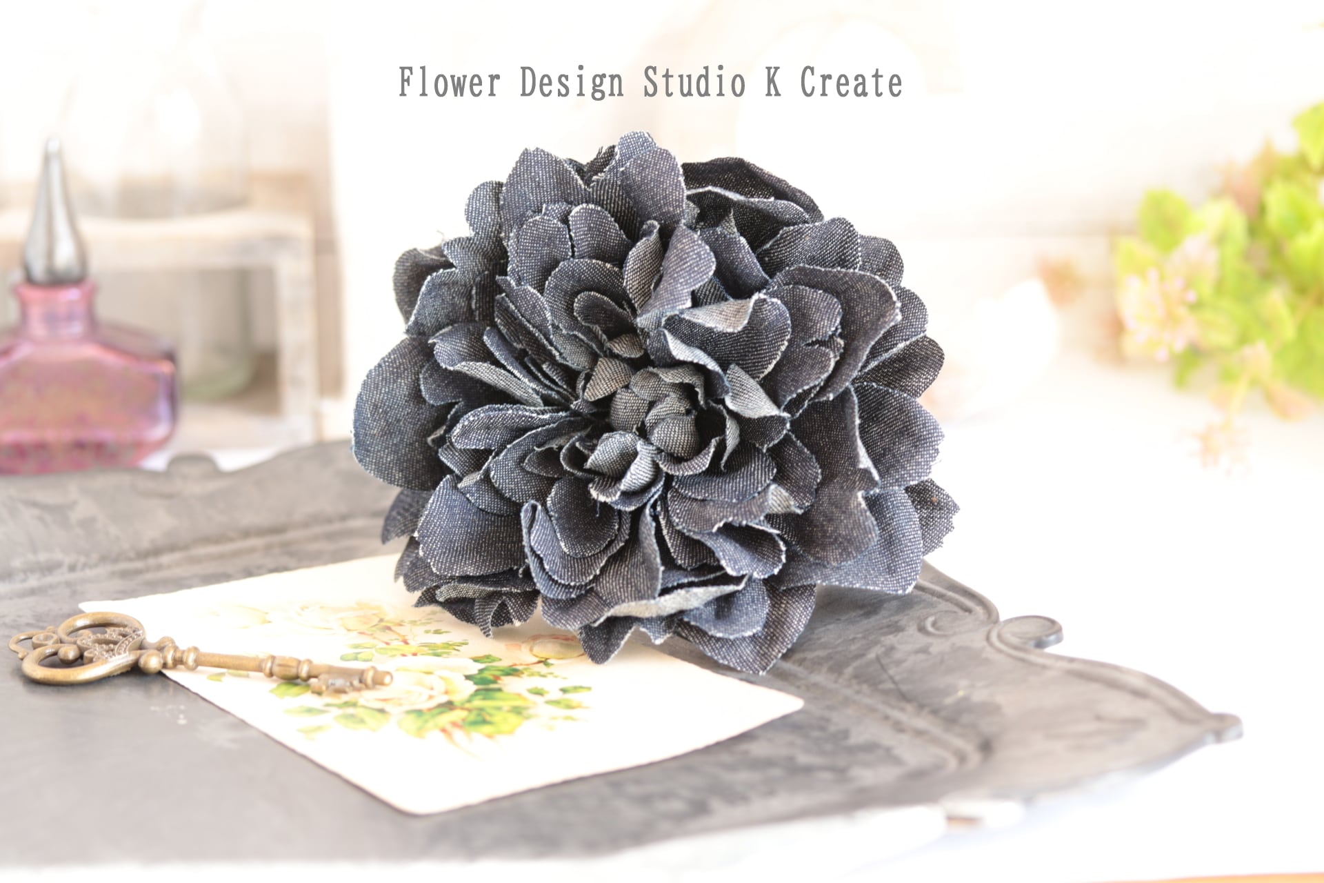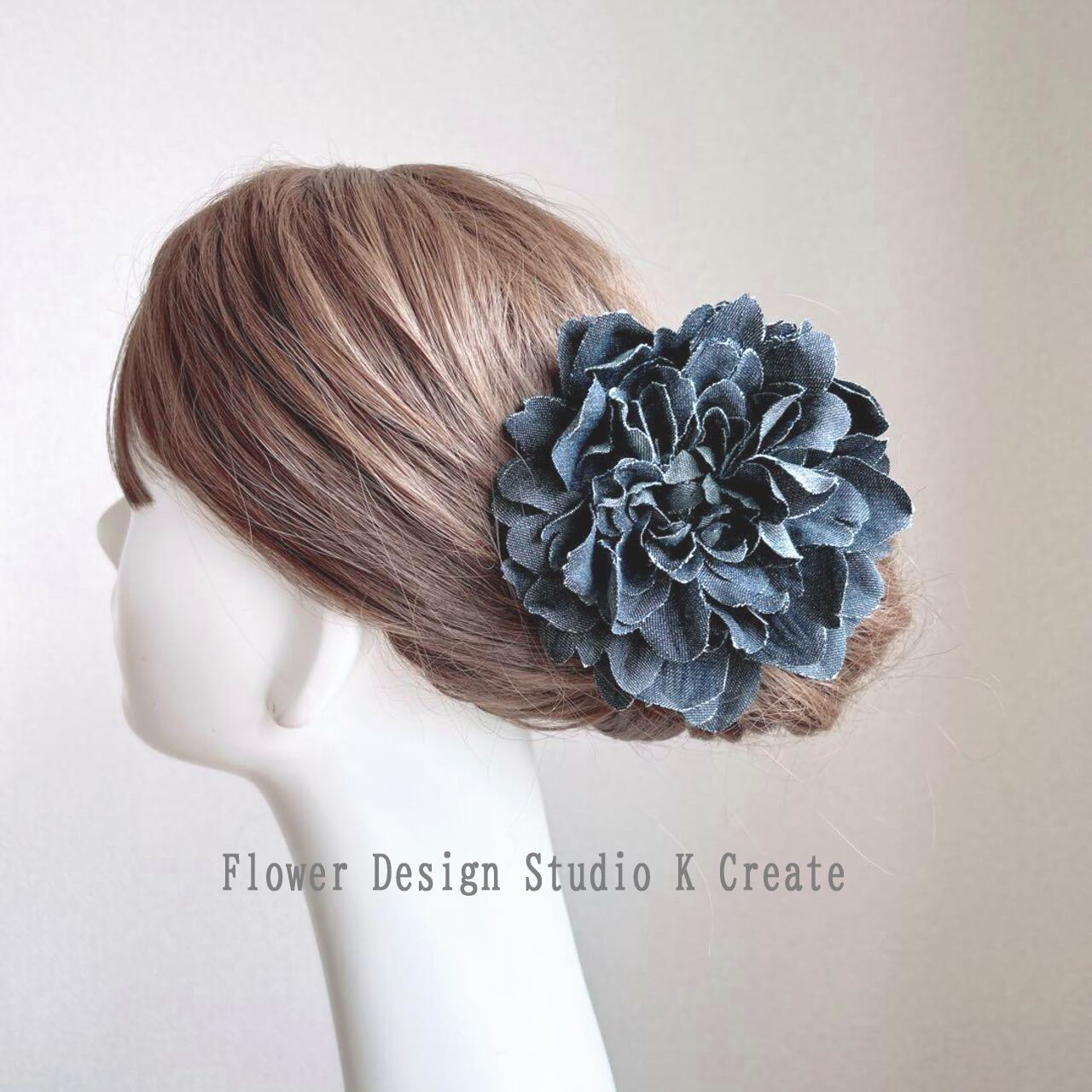 ブラックデニムのダリアの髪飾り(シングルワイヤー仕様) デニム フラメンコ フローレス 黒 ブラック 花飾り 花