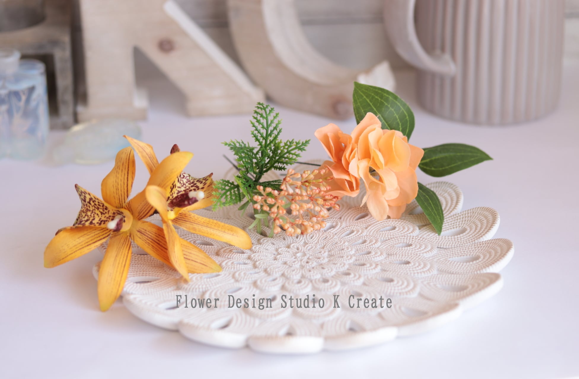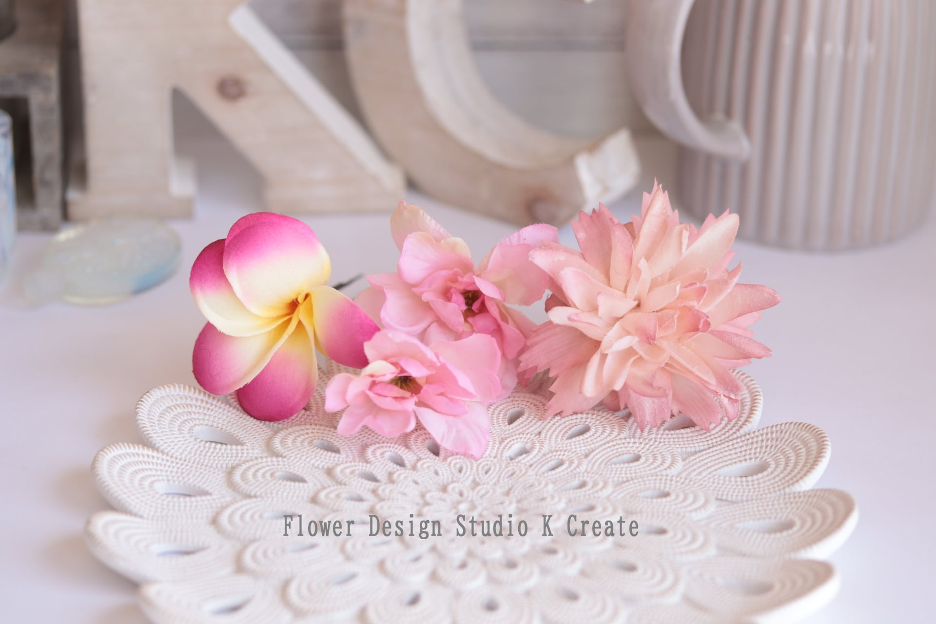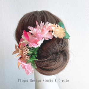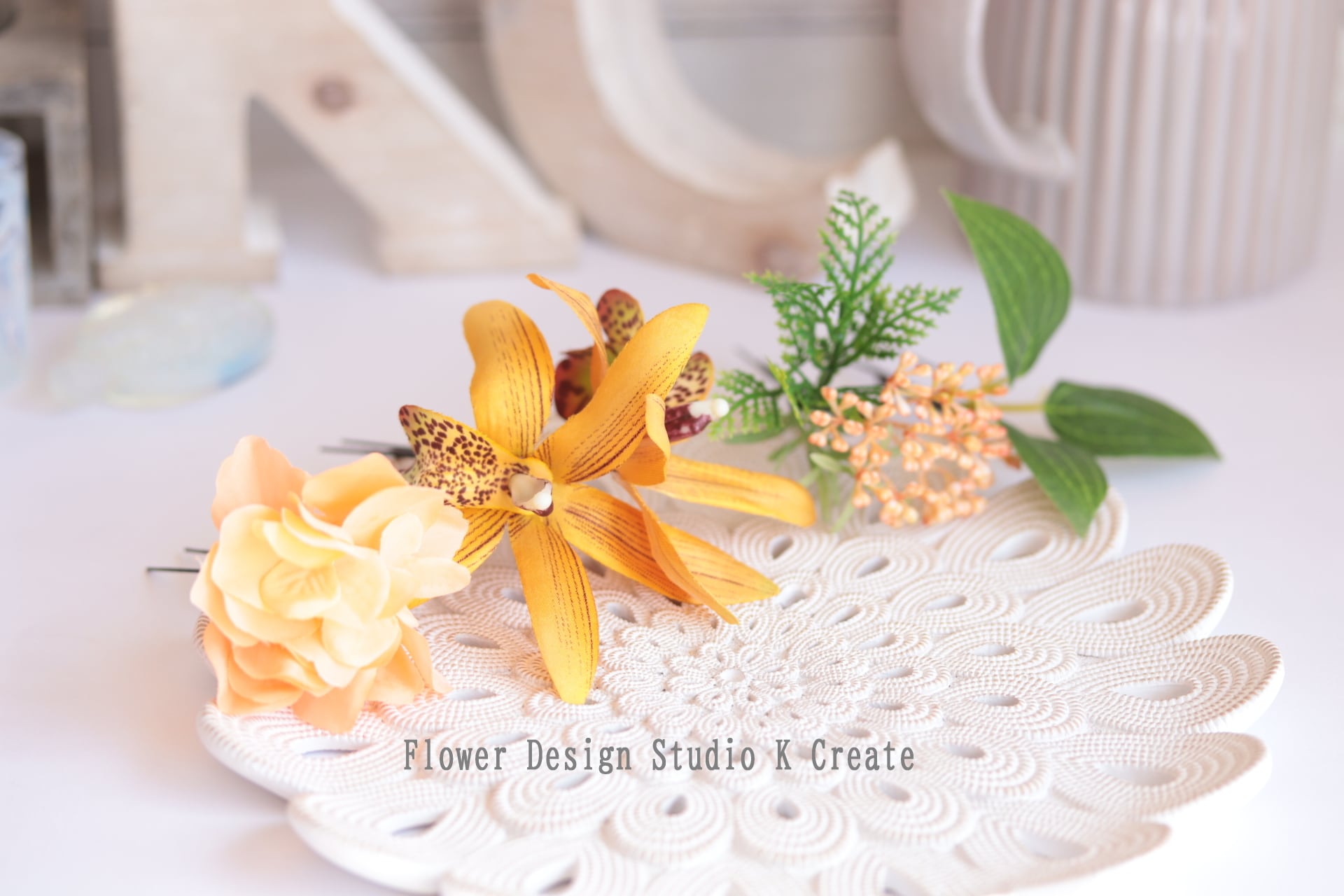 プルメリアとオーキッドの髪飾り リゾ婚 ピンク オレンジ 髪飾り オレンジ ウェディング 結婚式 浴衣 ヘッドドレス 花嫁ヘア ハワイ挙式