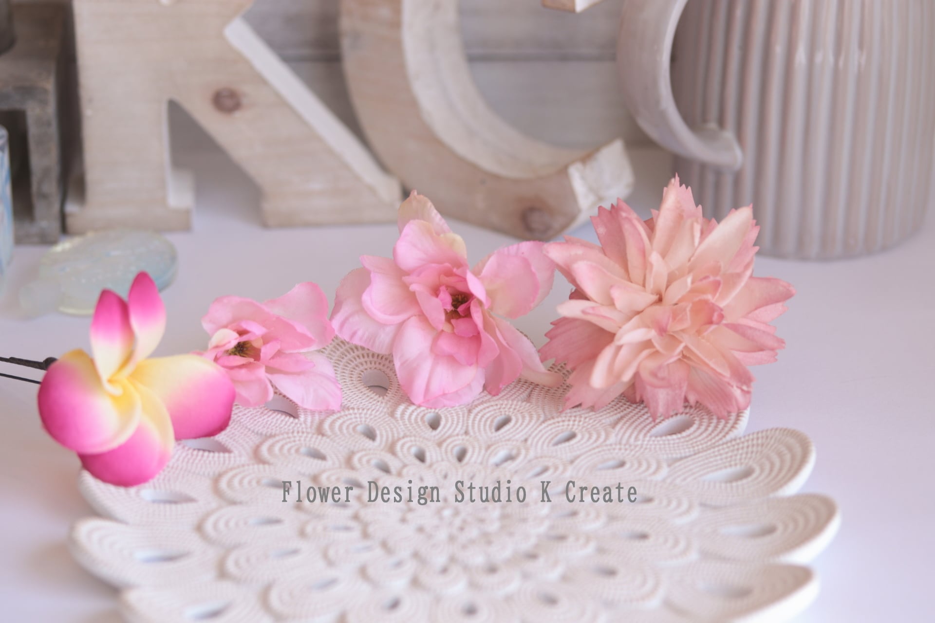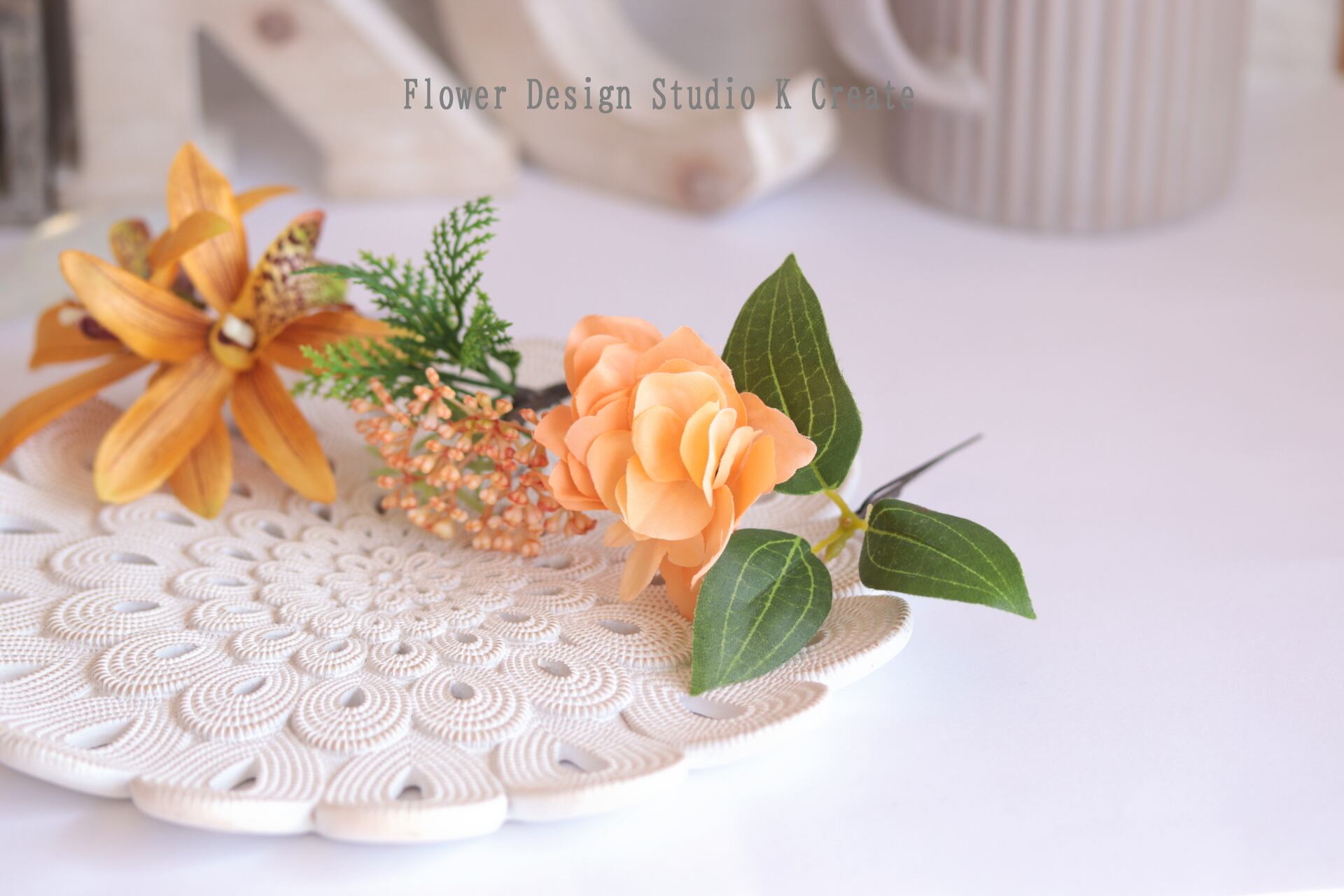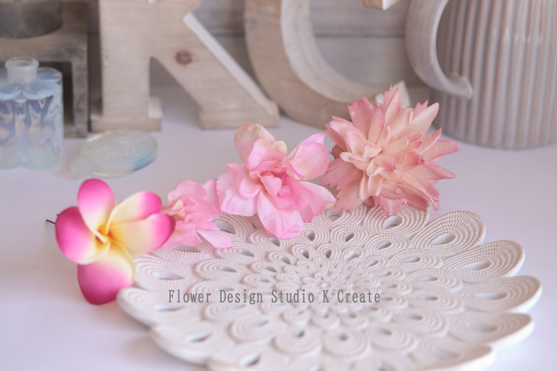 プルメリアとオーキッドの髪飾り リゾ婚 ピンク オレンジ 髪飾り オレンジ ウェディング 結婚式 浴衣 ヘッドドレス 花嫁ヘア ハワイ挙式