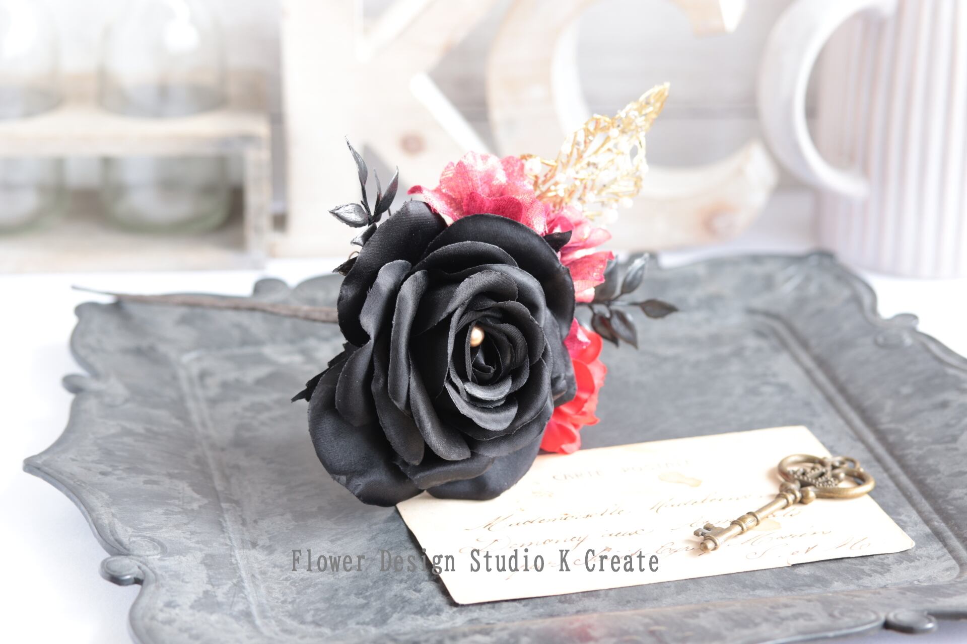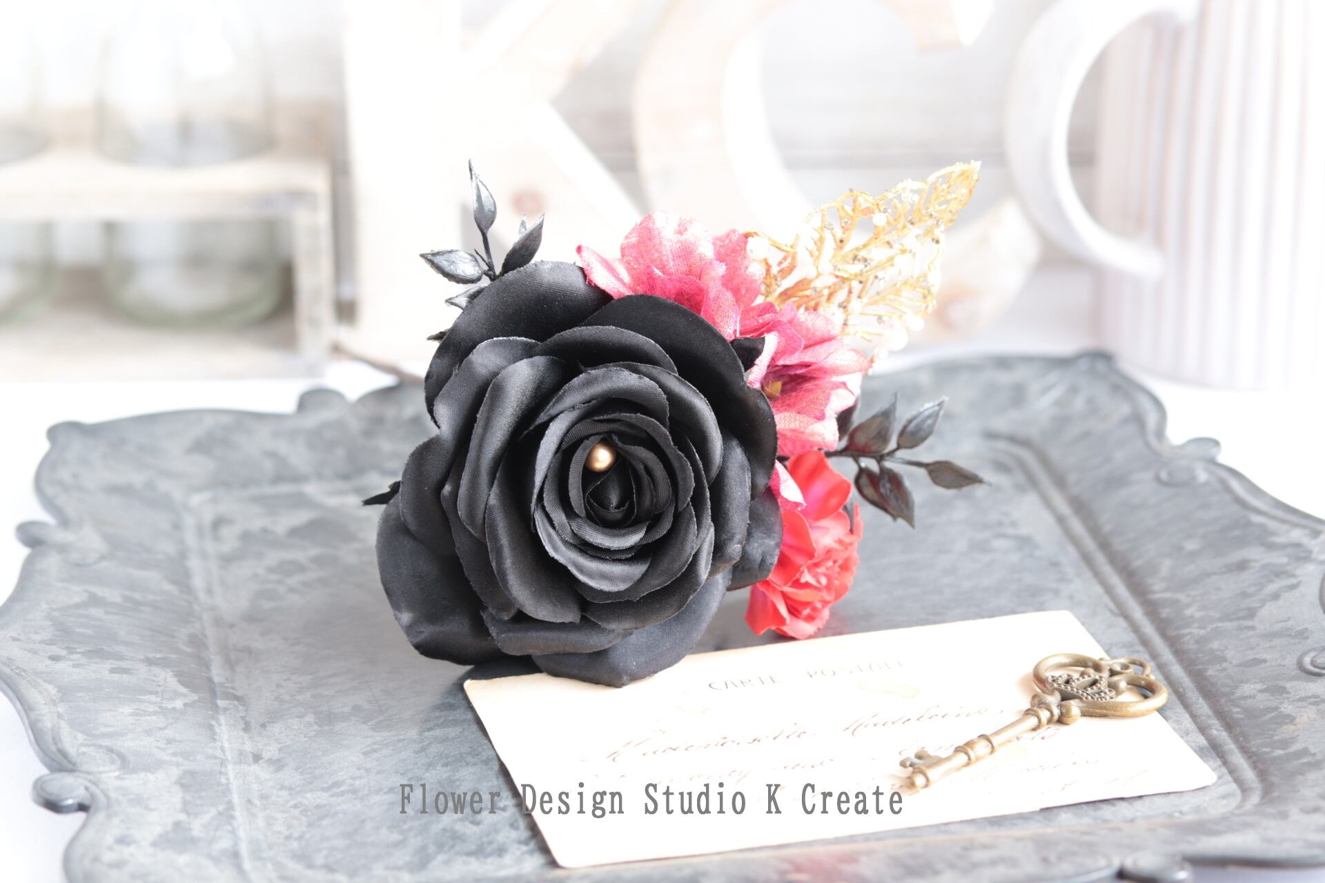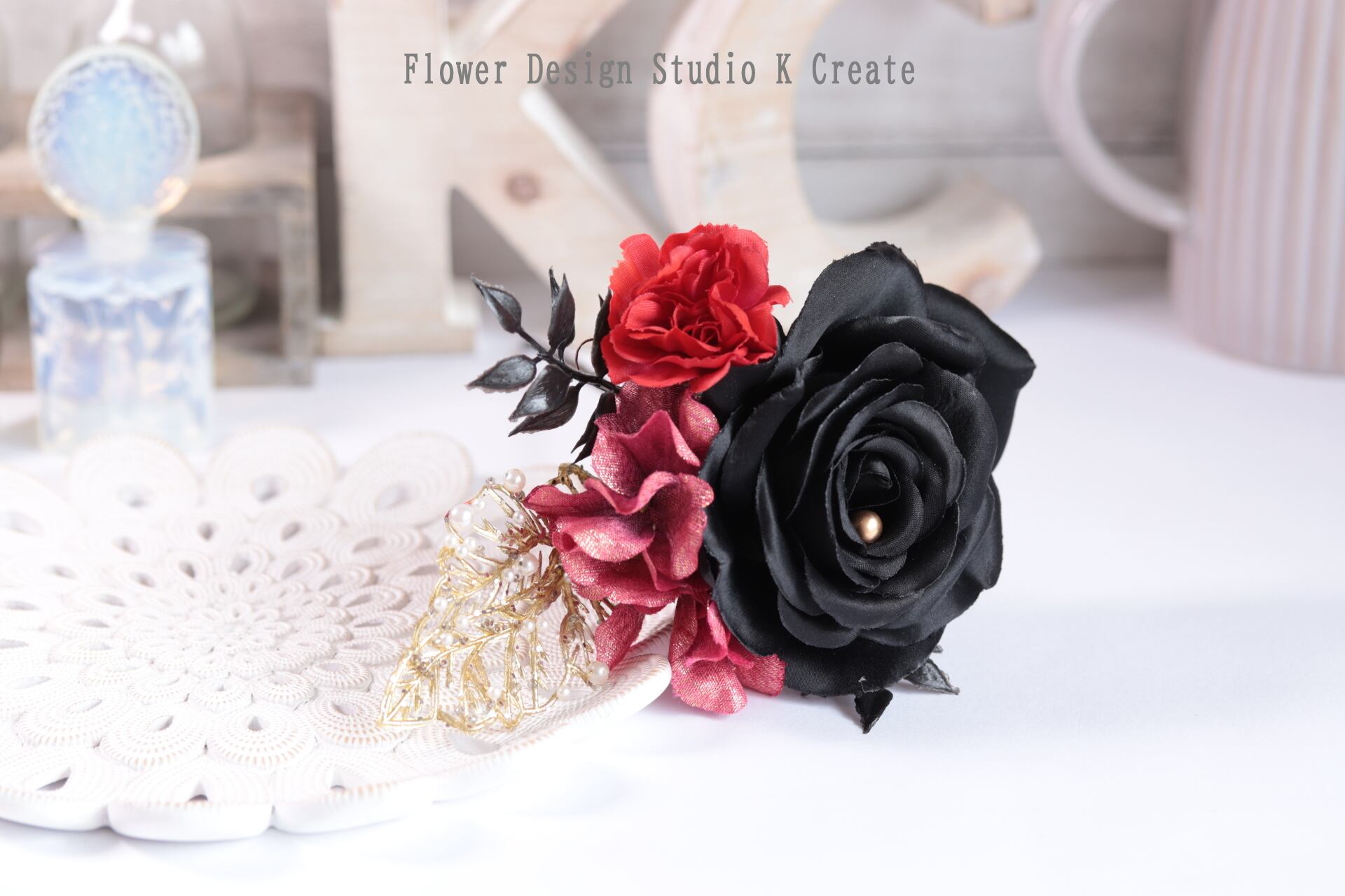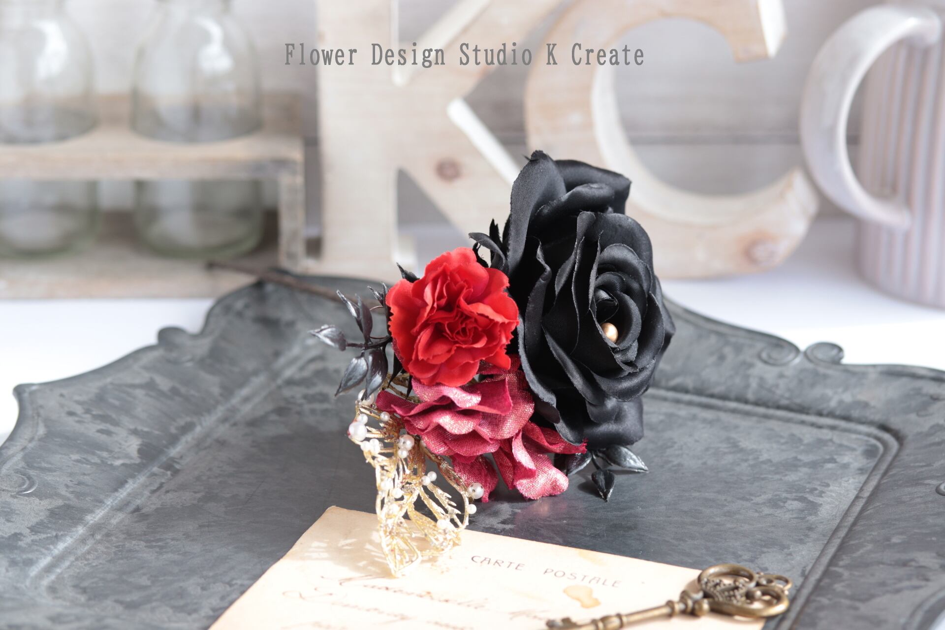 黒いサテンの薔薇をメインに、