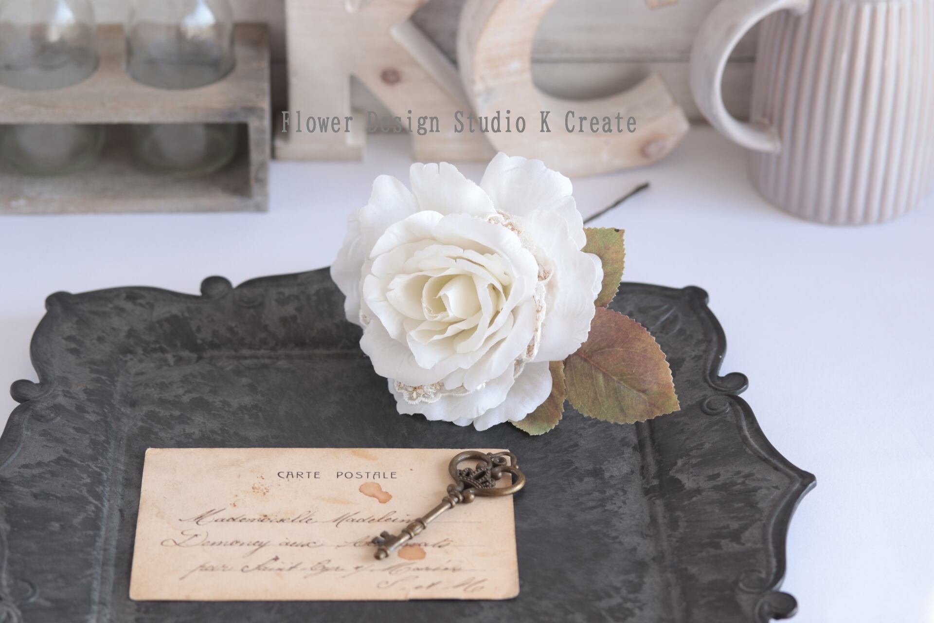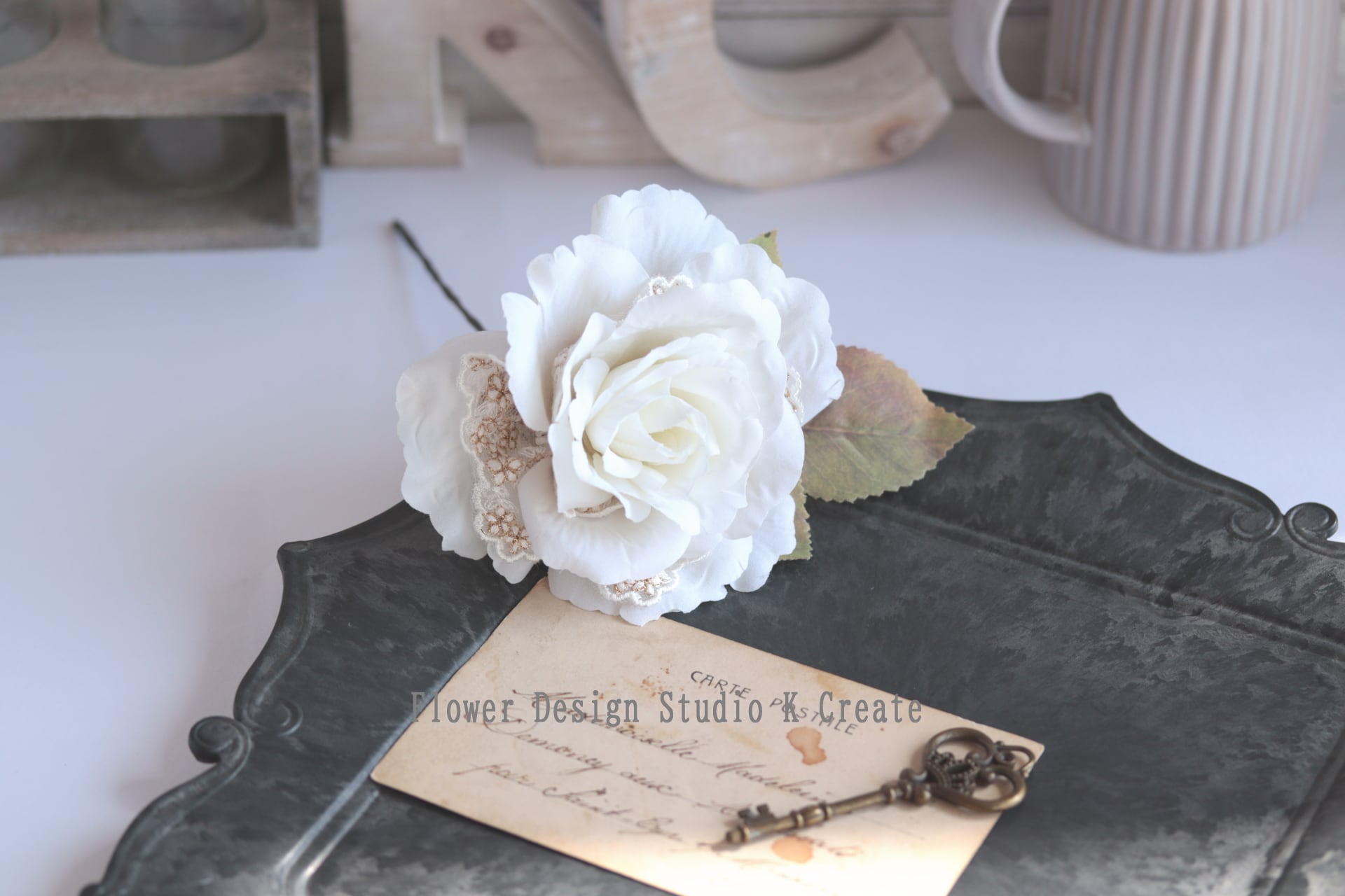 フラメンコ・ダンス髪飾りに♡白いレースローズの髪飾り 薔薇 フラメンコ フローレス ワイヤー仕上げ 薔薇 レース ヘッドドレス バラ 髪飾り 頭飾り 花飾り ホワイト 白