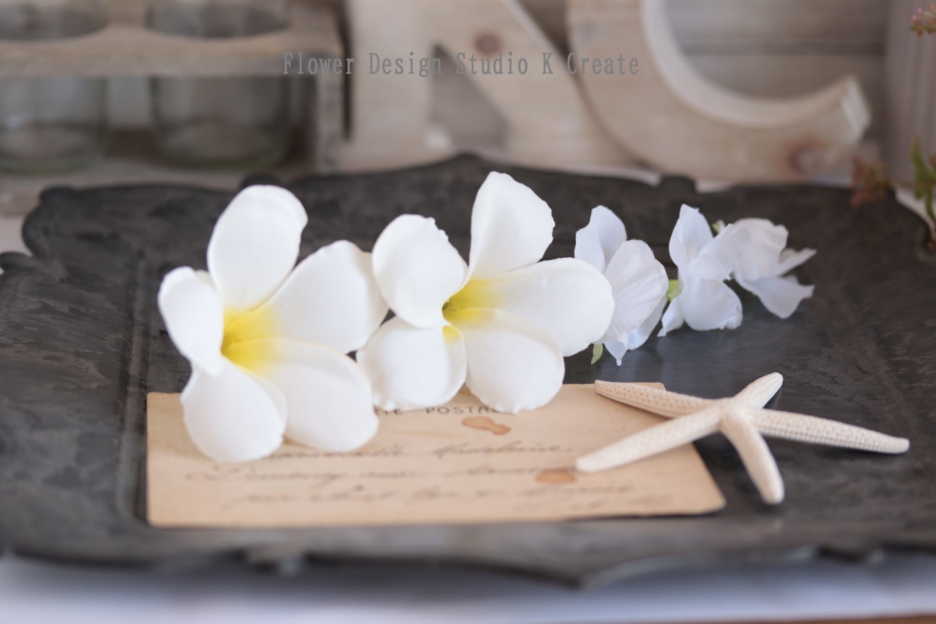 白いプルメリアをメインに、