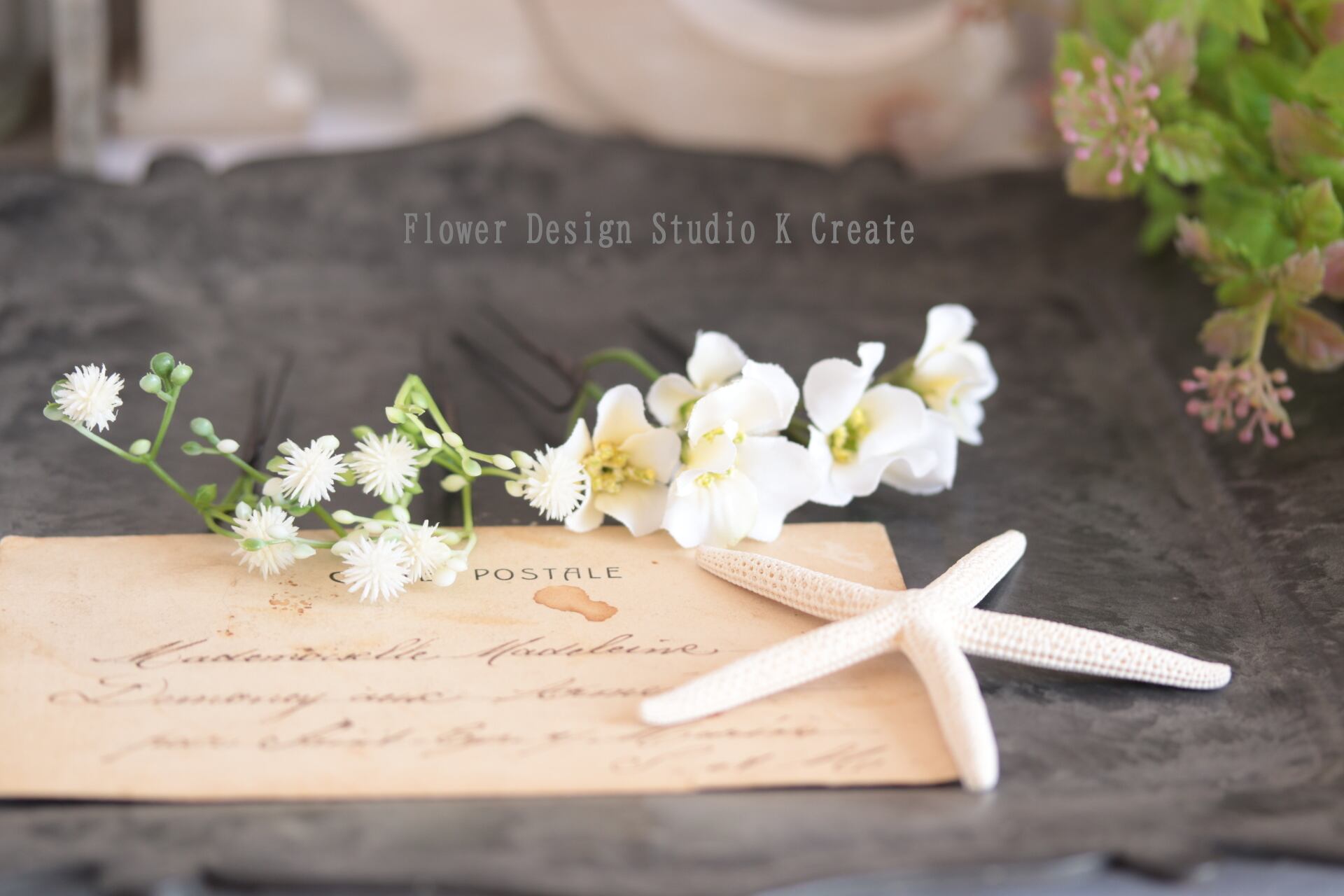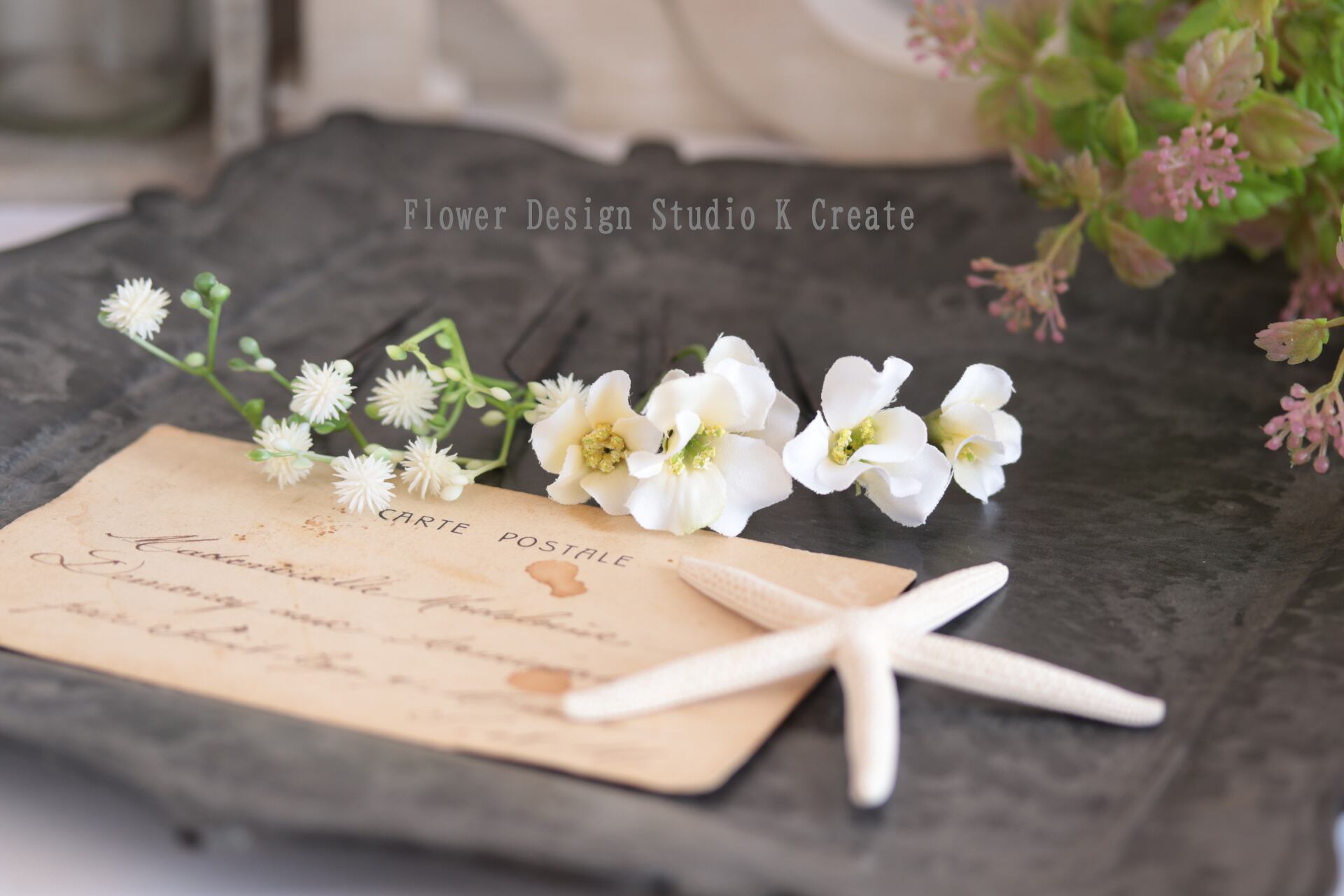 清楚でナチュラルな可愛いお花の髪飾りです。
