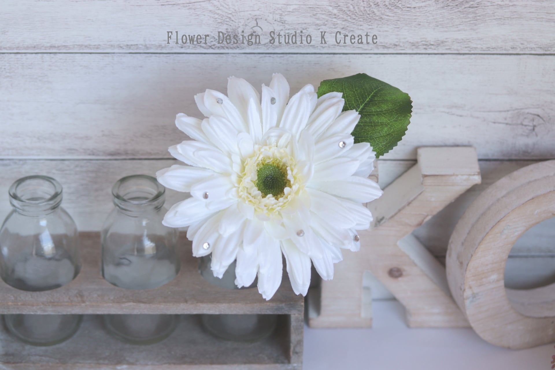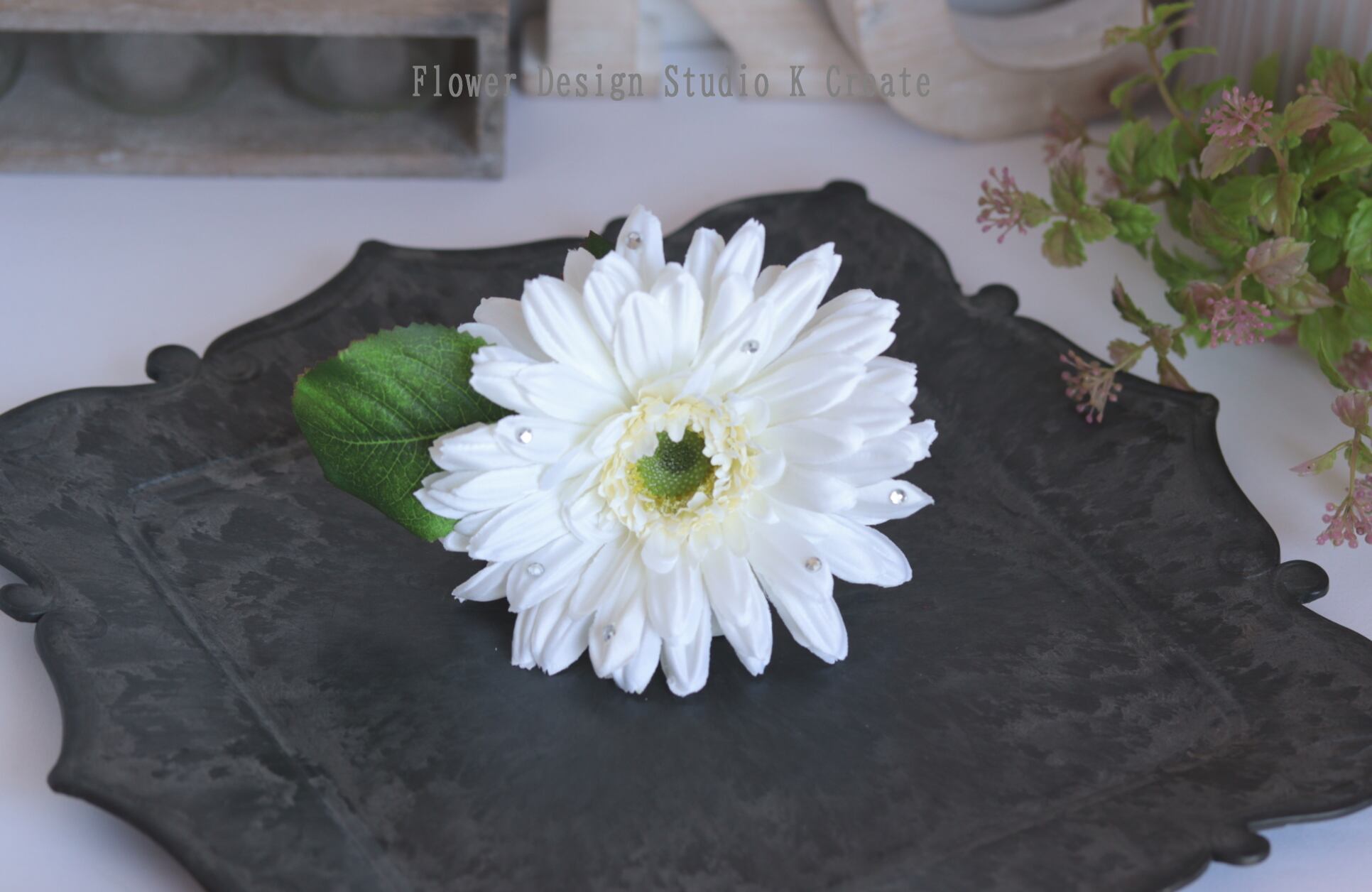 白いガーベラの髪飾りになります。