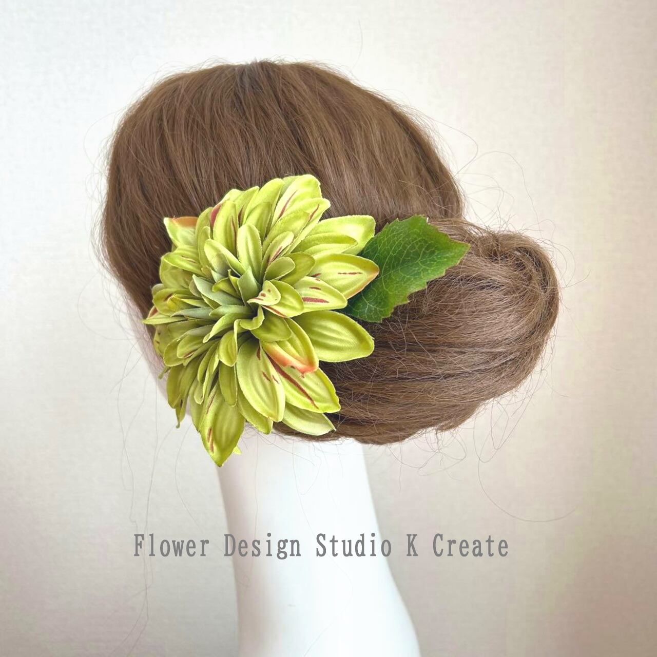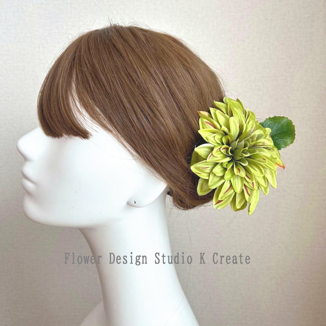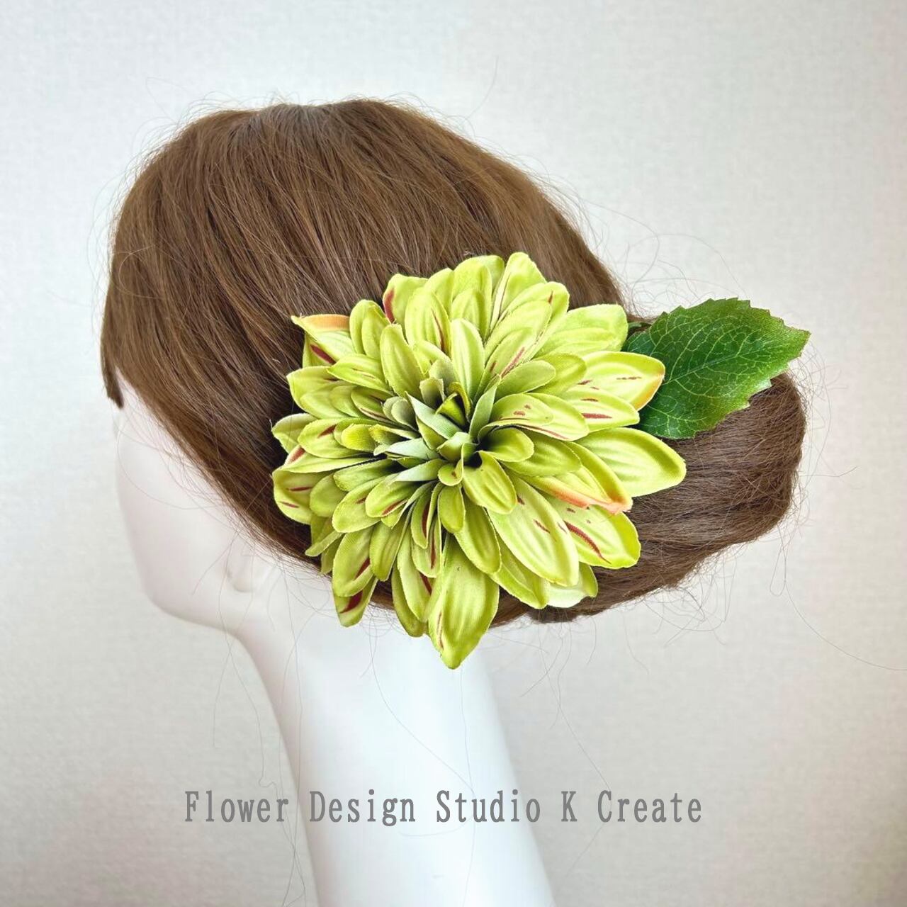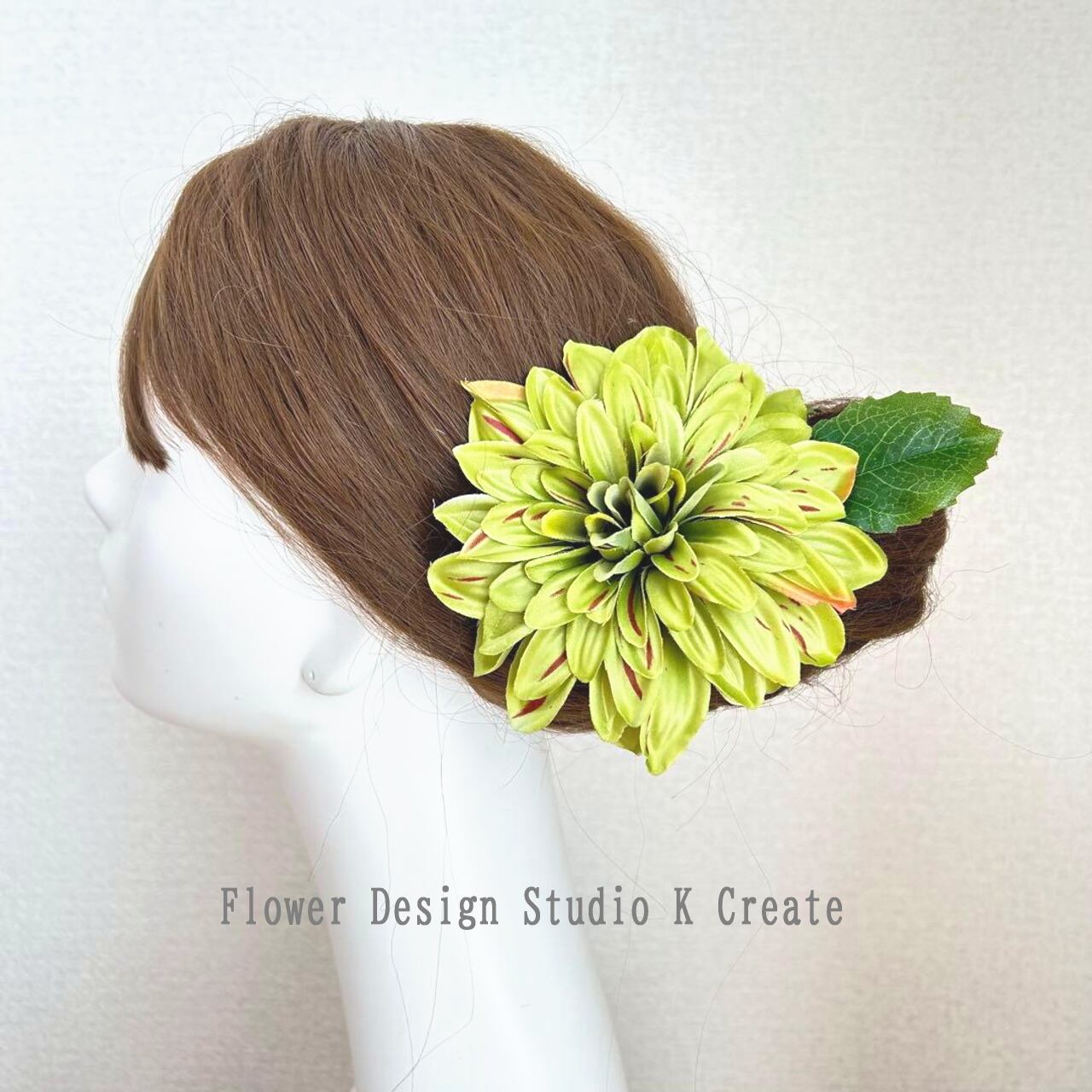 黄緑のダリアの髪飾りです。