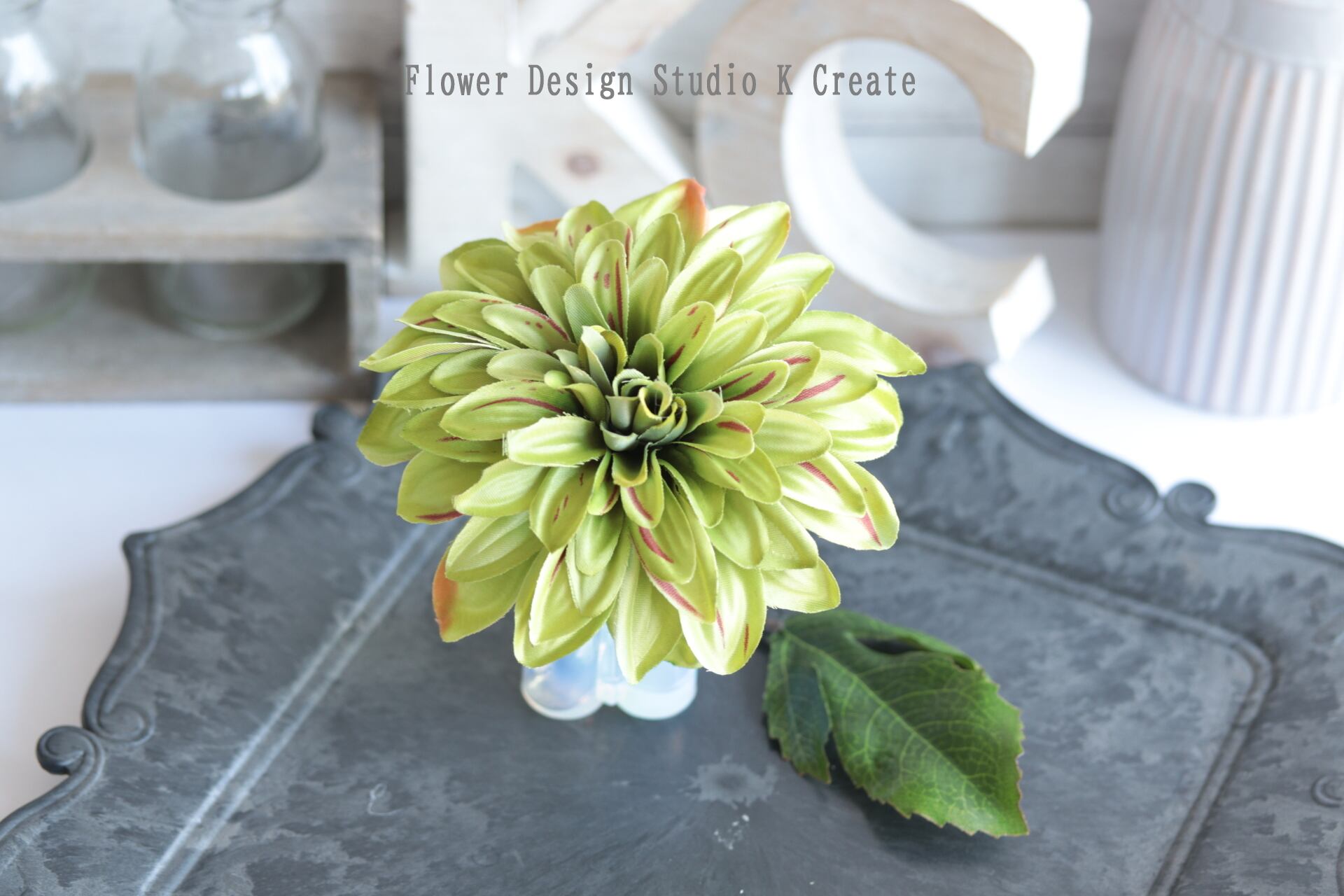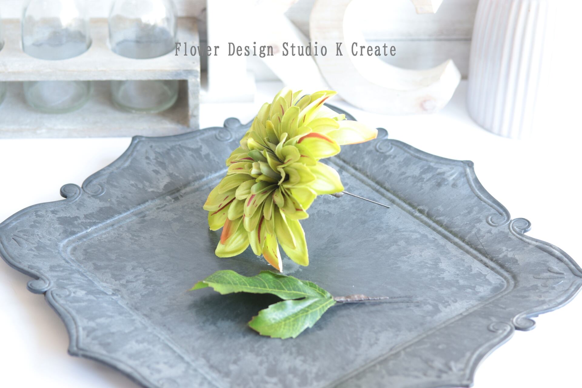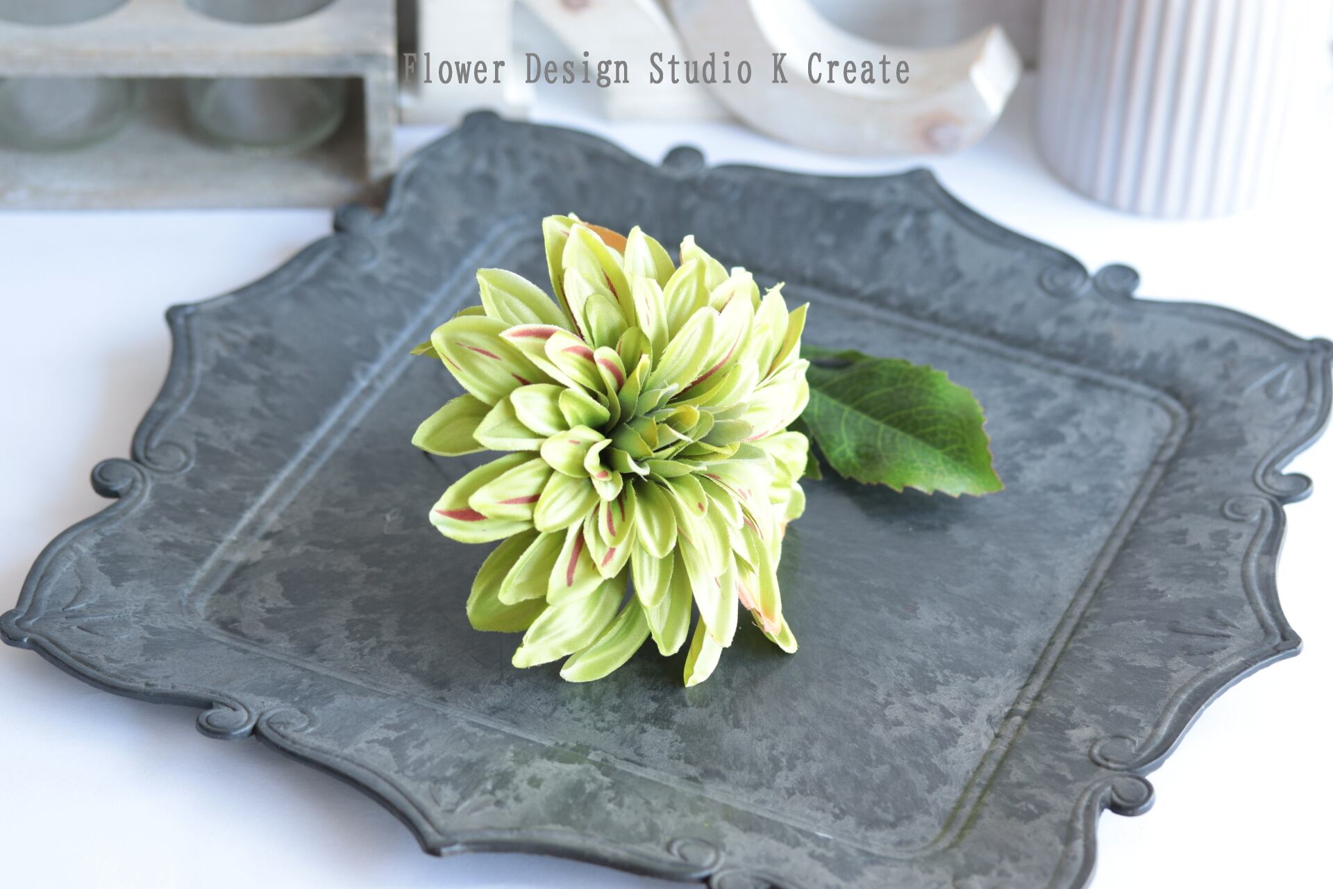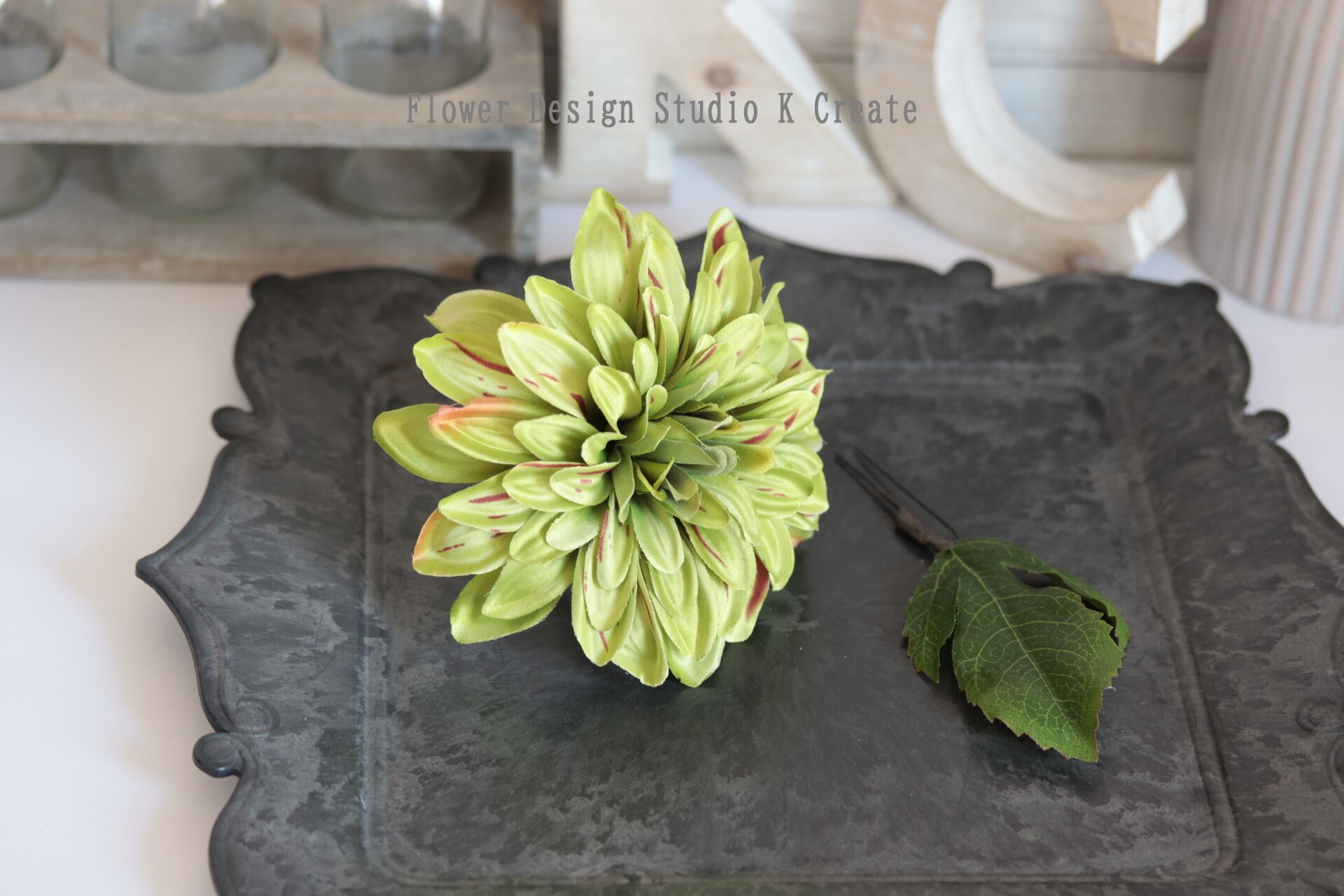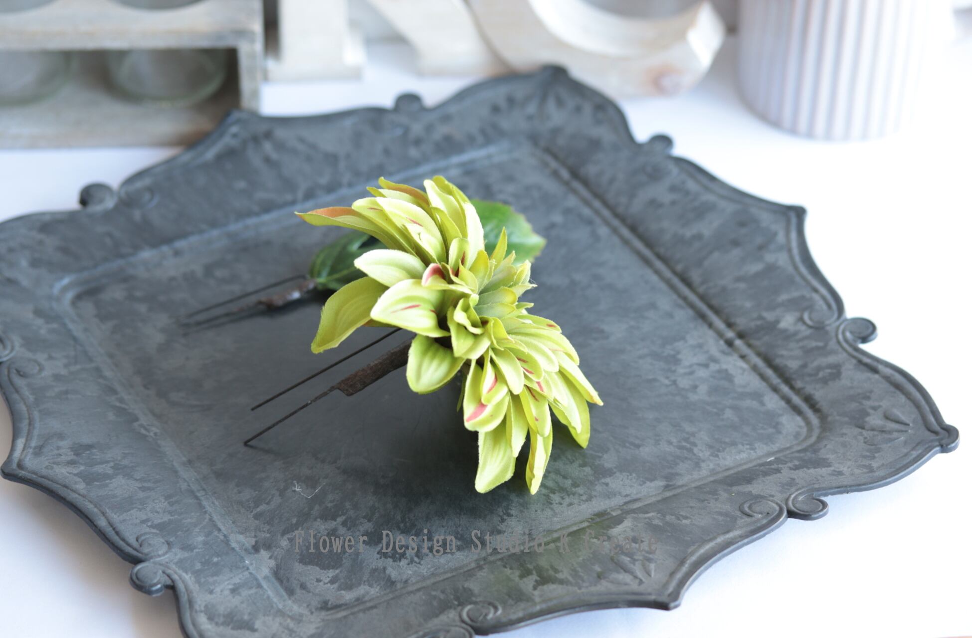 黄緑のダリアの髪飾りです。