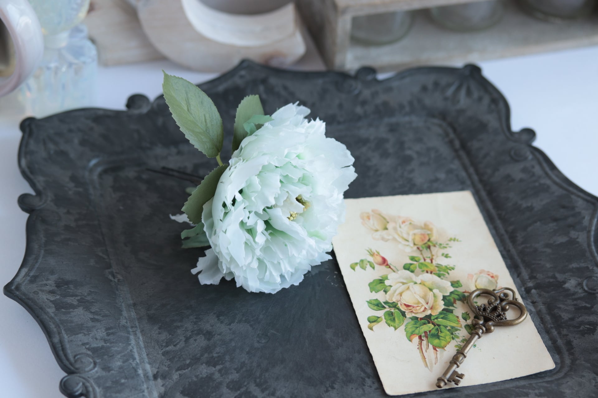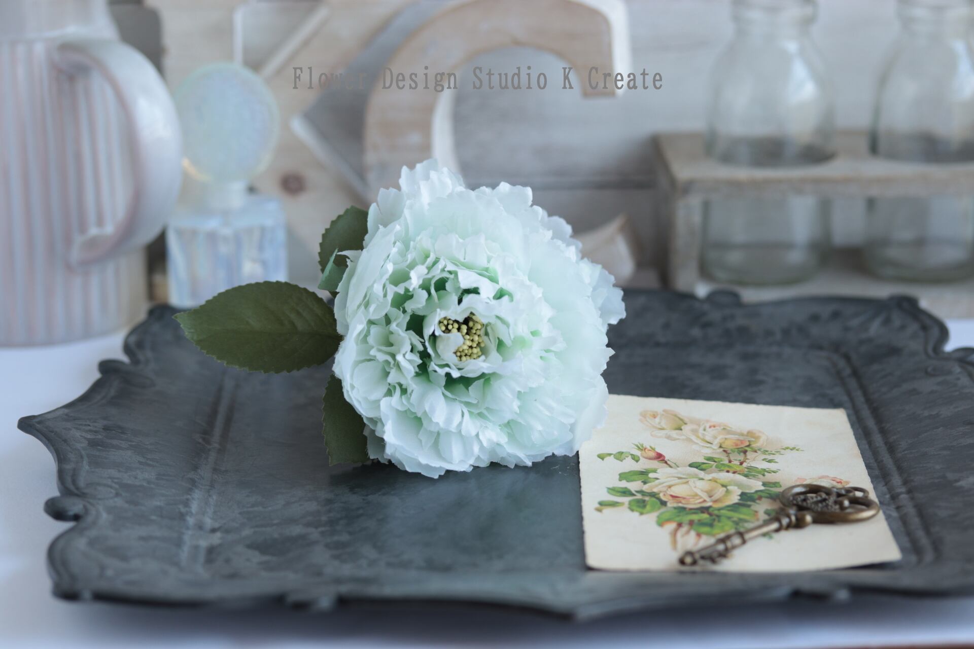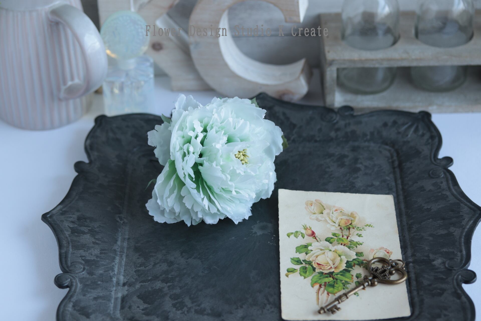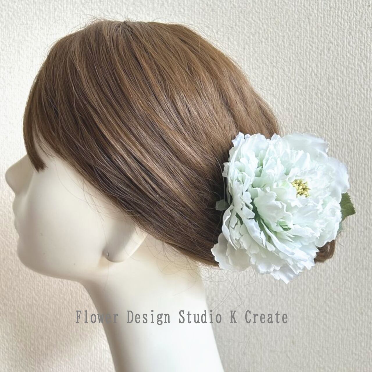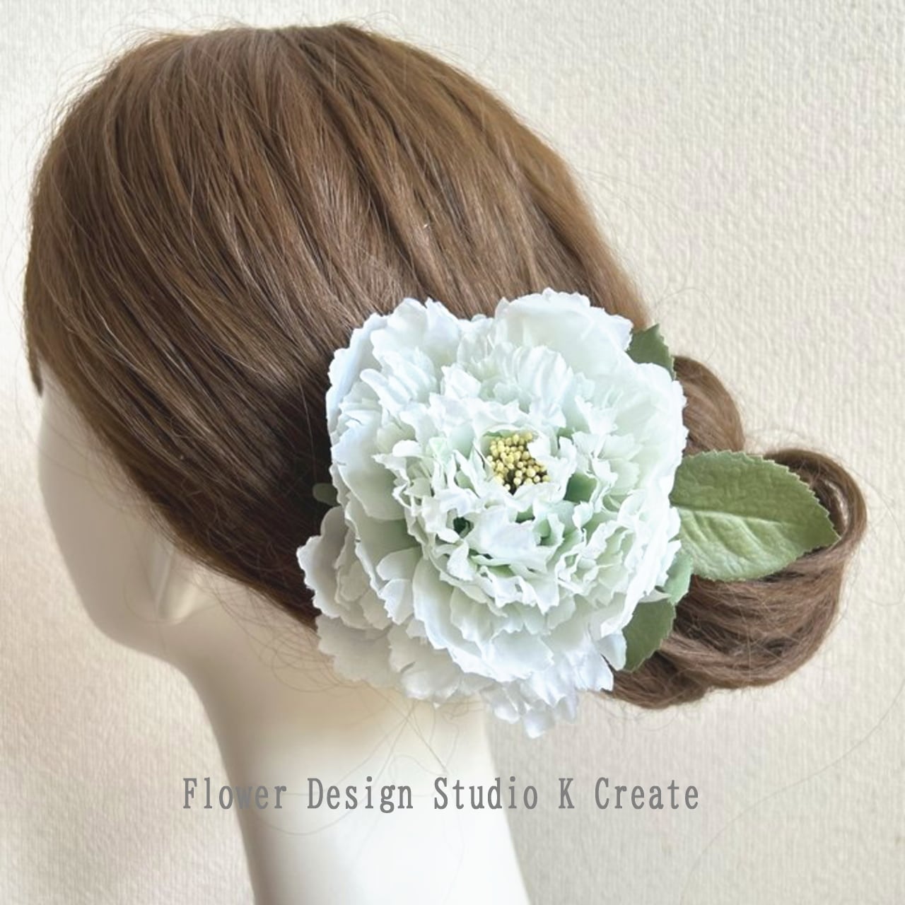 ミントグリンのピオニーの髪飾り ミント グリン 花径11cm フフラメンコ フローレス 髪飾り 花 ミントグリーン ダンス 和装 浴衣 ピオニー