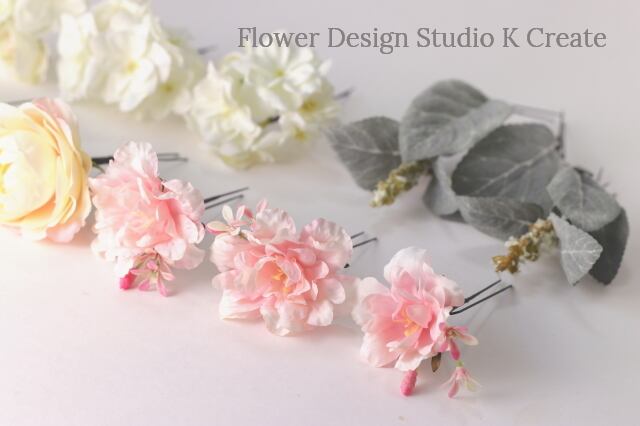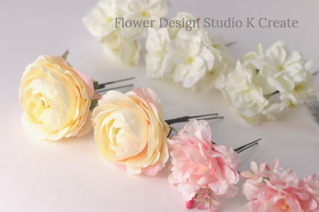 お花は、アレンジがお好みでできる、Uピンで仕上げました。