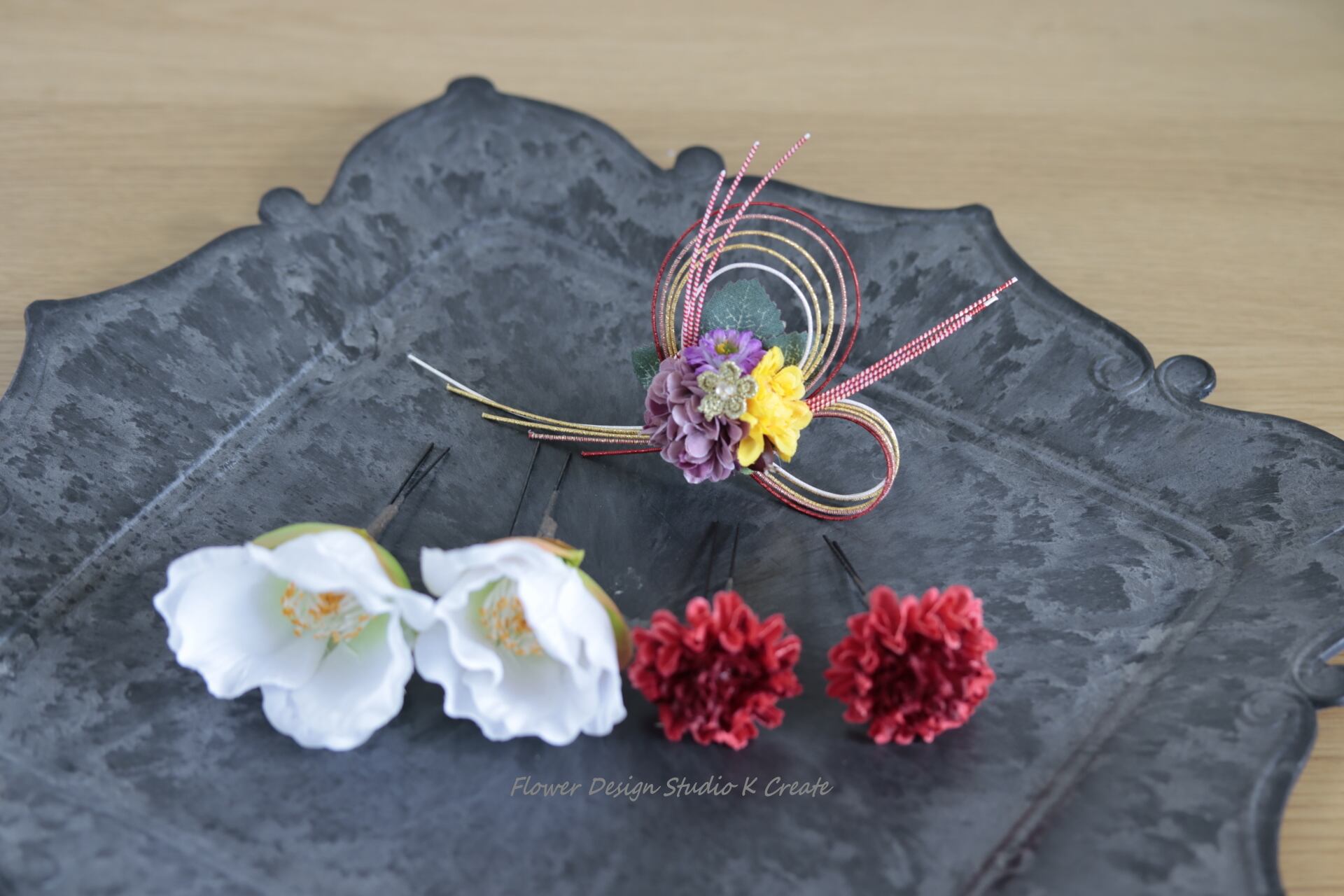 水引オーナメントにもお花をアレンジし、