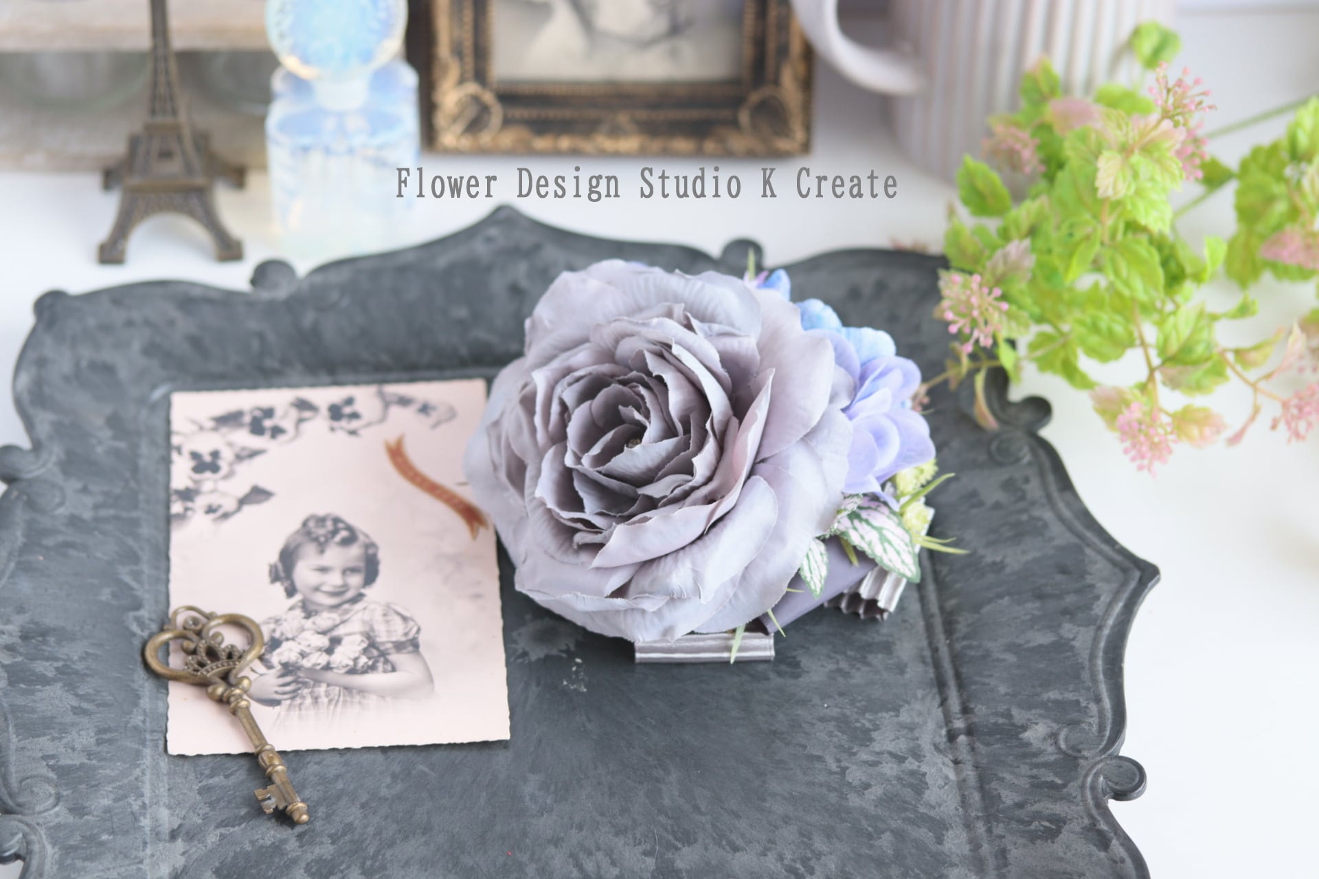 グレーローズとプリーツリボンのコサージュ 卒業式 入学式 卒園式 入園式 フォーマル 謝恩会 ママコーデ 発表会 結婚式 コサージュ グレー