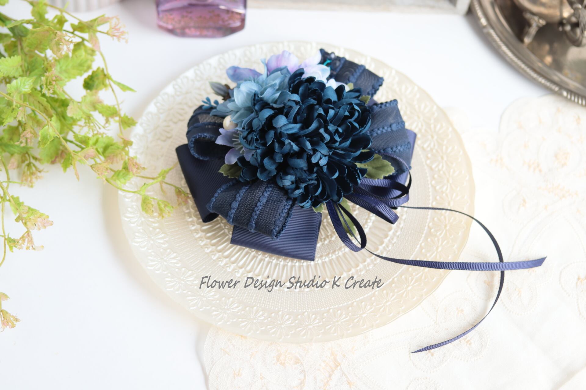着物・浴衣髪飾りに♡ネイビーのマムのヘアクリップ 浴衣 袴 着物 和装 前撮り 髪飾り ヘアクリップ マム リボン ネイビー