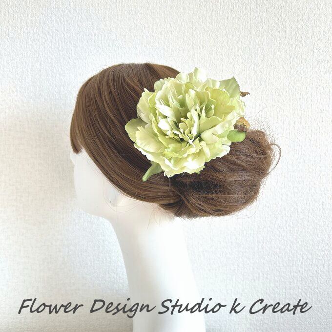 ライムグリーンのピオニーのヘッドドレス グリン 芍薬 髪飾り 浴衣髪飾り フローレス フラメンコ 黄緑